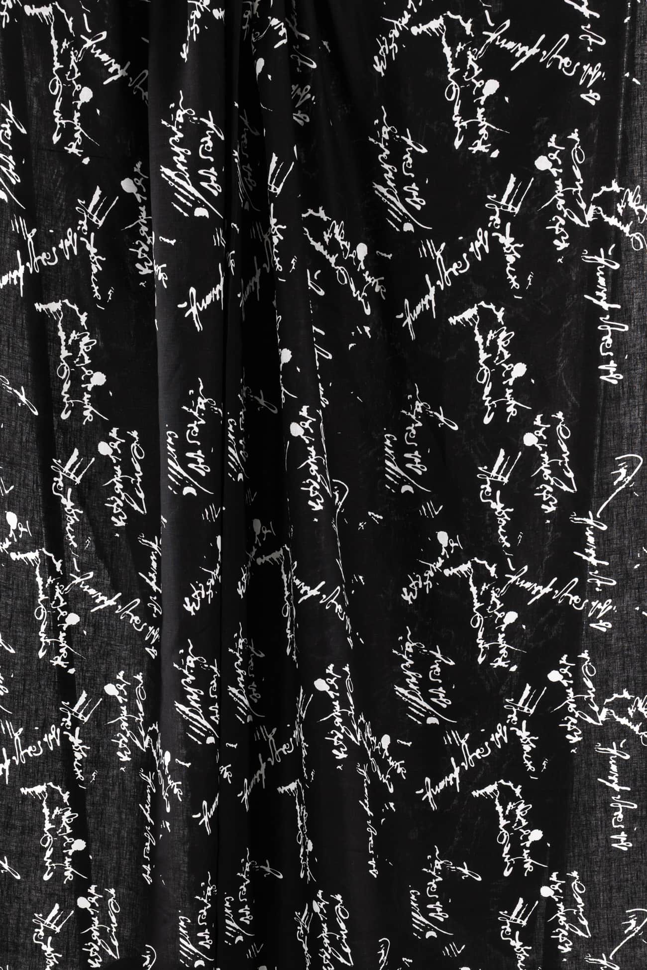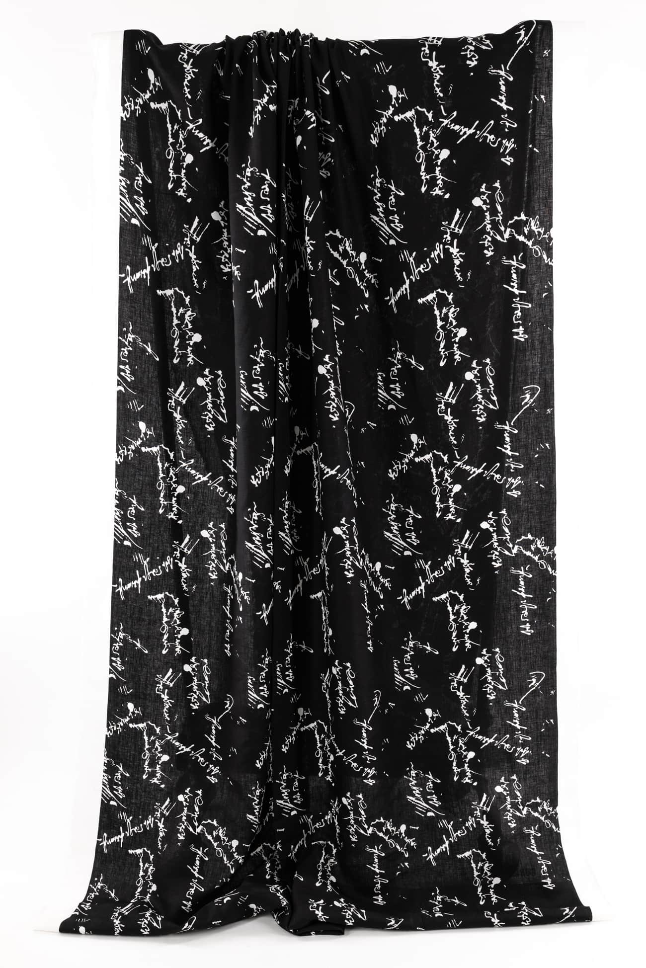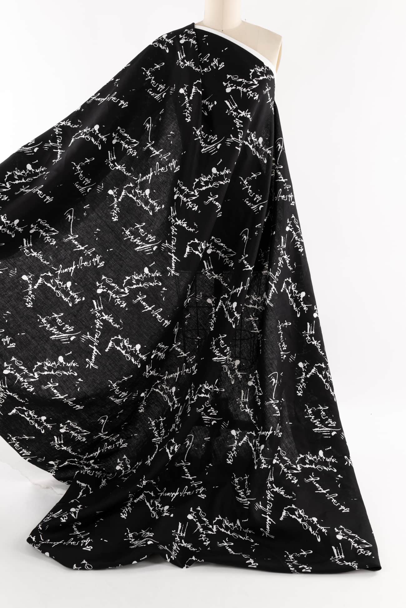 Abstract text/calligraphy print in black and white on exceptional quality linen from Poland where some of the finest long fiber linens are produced. Perfect in-between mid/light-weight (not too heavy, not too light), opaque, with a silky smooth cool dry hand and lightly crisp yet supple drape. A beautiful basic that will work lined or unlined. If you are making an unlined jacket or coat, I recommend lining the sleeves to prevent wrinkling and allow other garments to slip on/off easily. If making structured pants, I'd underline the front to the knee to prevent wrinkling. My favorite lining for linen is a rayon bemberg or rayon blend. An ideal linen for both tops and bottoms: right for a jacket, vest, duster coat, top, tunic, structured dress, or skirt, or could be used for accessories or home dec projects. One way design, 11" repeat.