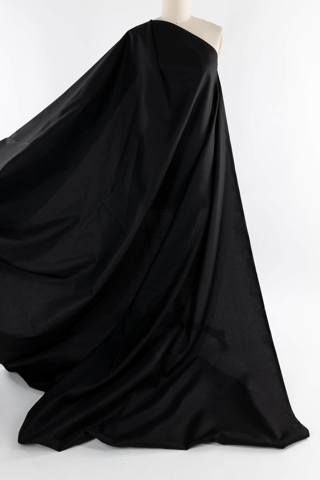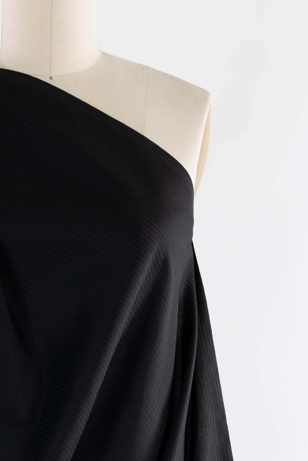 Quiet yarn-dyed stripe in a black woven is perfect for pockets. East coast deadstock is light/shirting weight, opaque, with a smooth cool polished hand and crisp drape. Right for a shirt, dress, tunic, skirt, soft pant, caftan, men's or pockets.