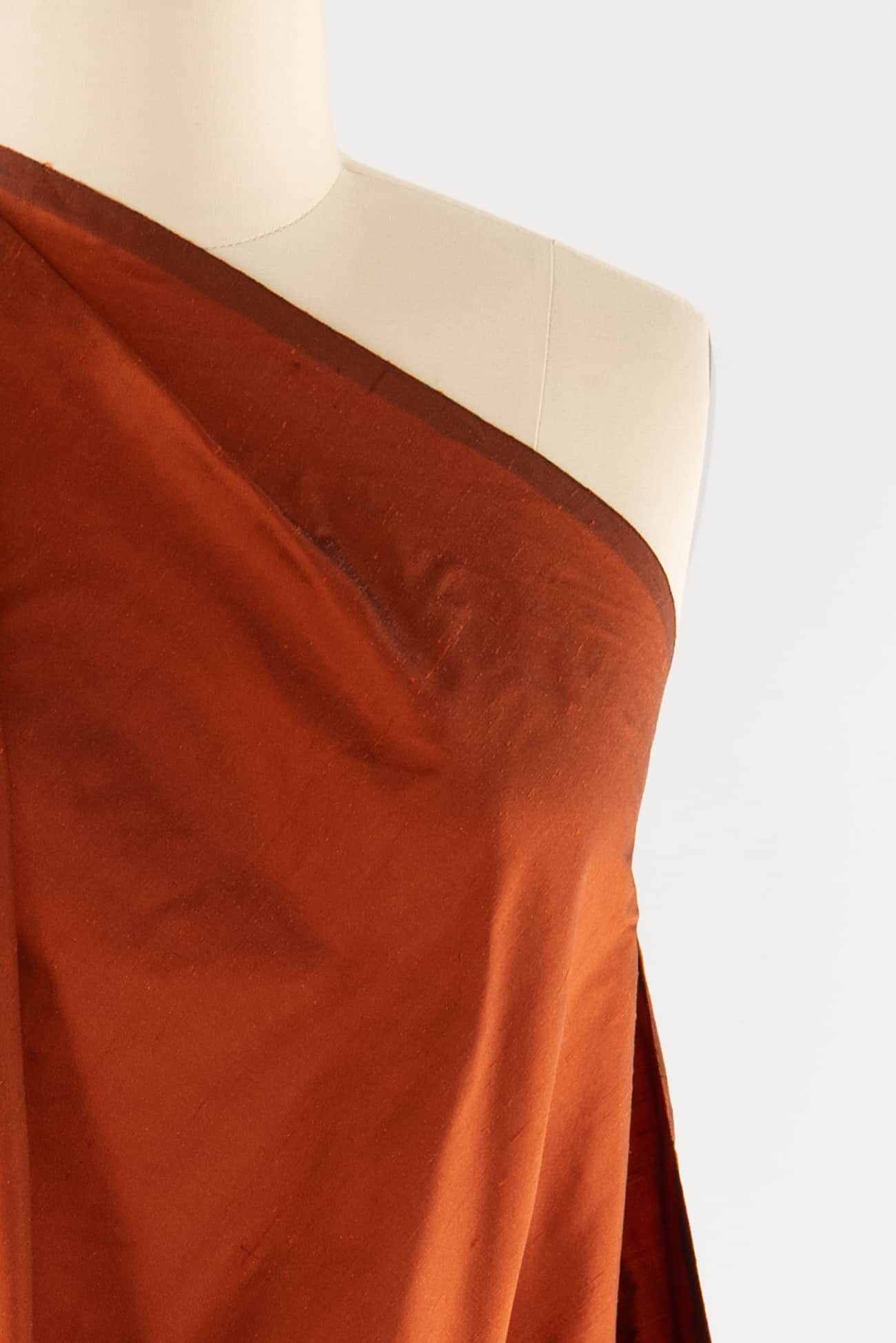 *Silk dupioni is known for its distinctively textured appearance and luxurious feel. It is created by weaving two or more different colors of silk threads, resulting in a slightly slubby, irregular texture with a lustrous quality and soft sheen.