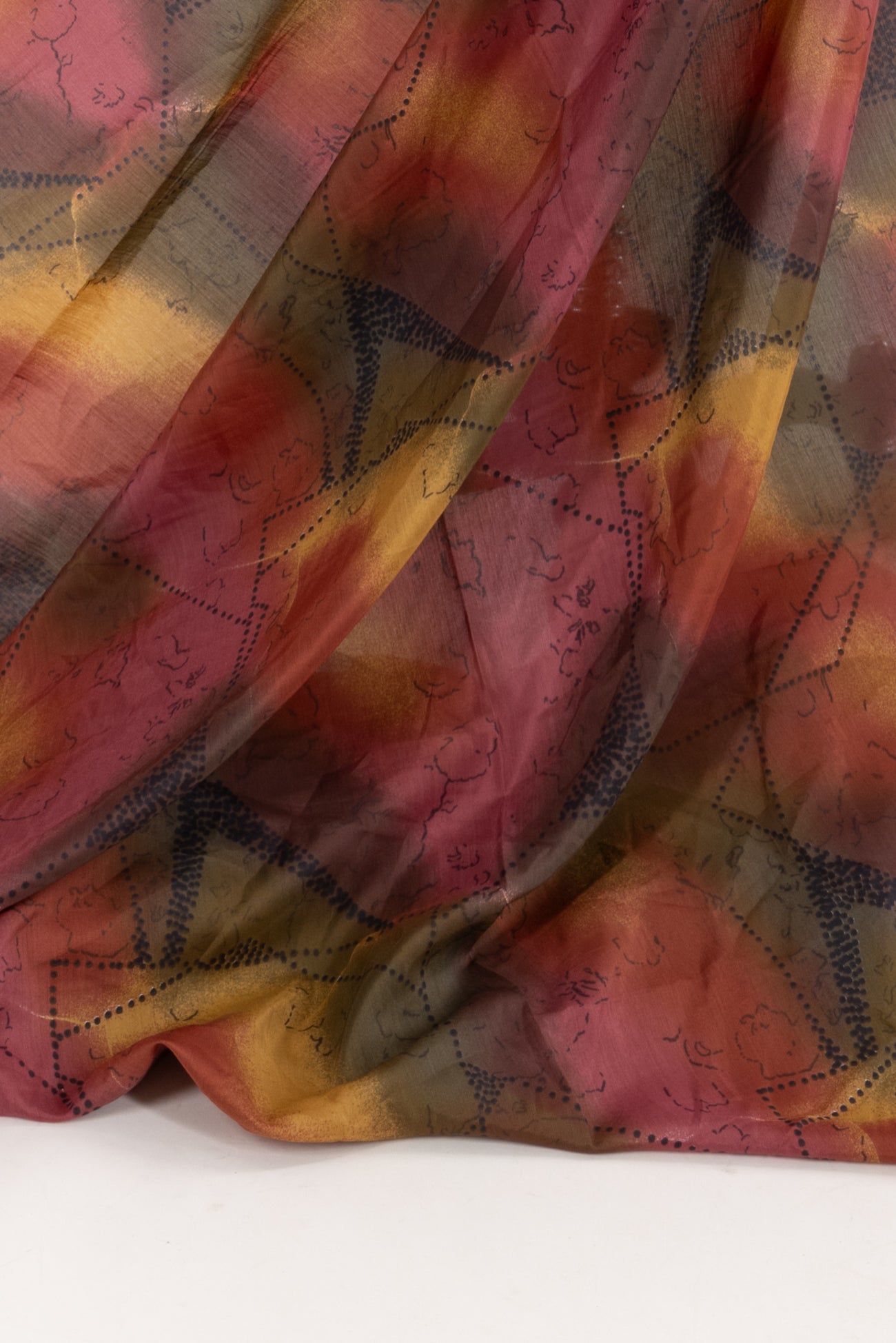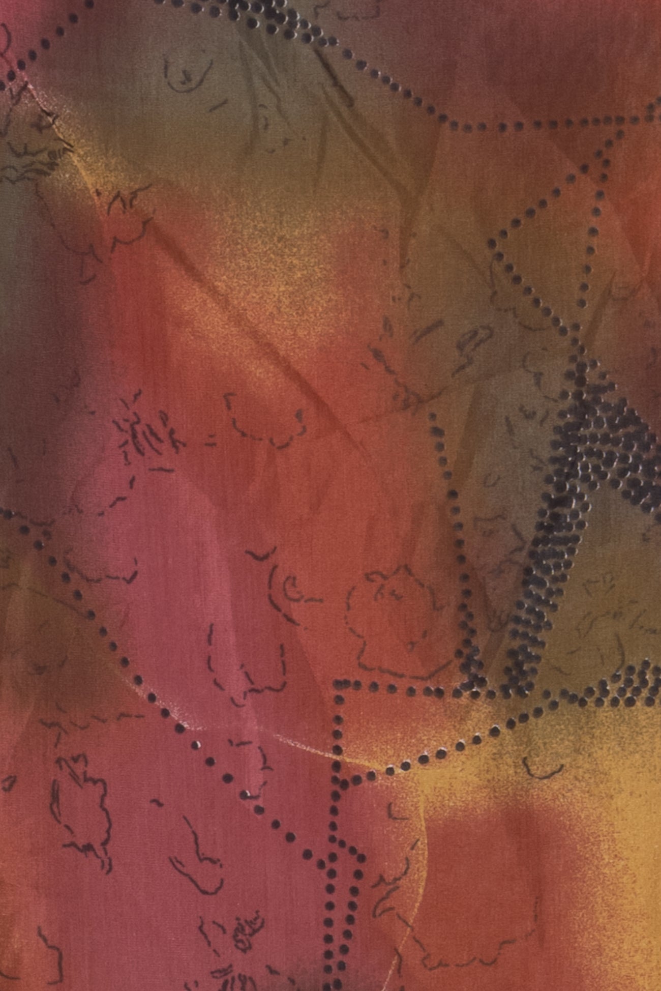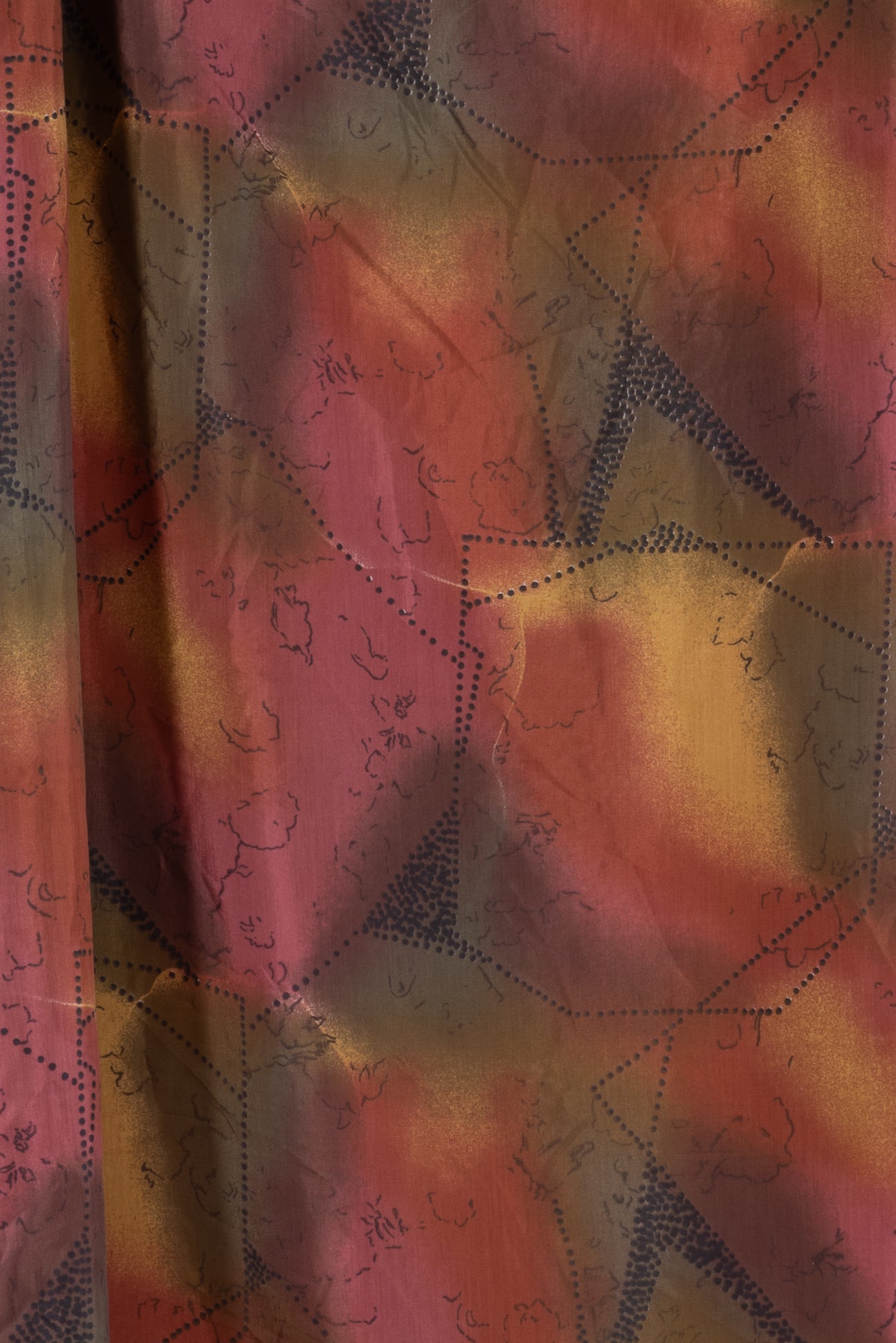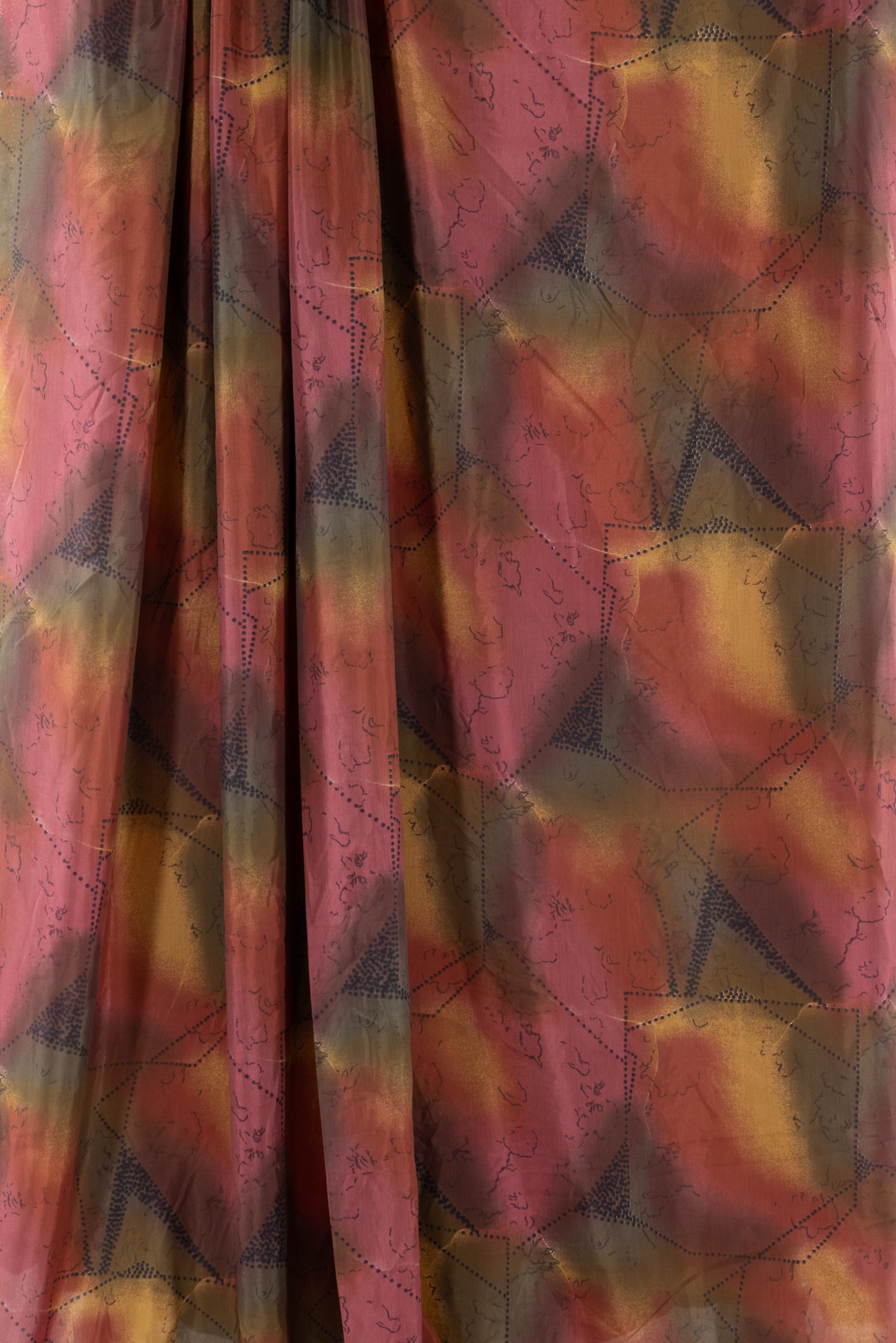 Stunning abstract in desert colors enhanced with black dots and scribbles, digitally printed on fine quality viscose, deadstock from an Italian mill. Lightweight, opaque, with a silky smooth hand, a 16¼" repeat and fluid airy drape. Right for a dress, shirt, tunic, soft pant, kimono, caftan, jumpsuit, loungewear, men's or children's.