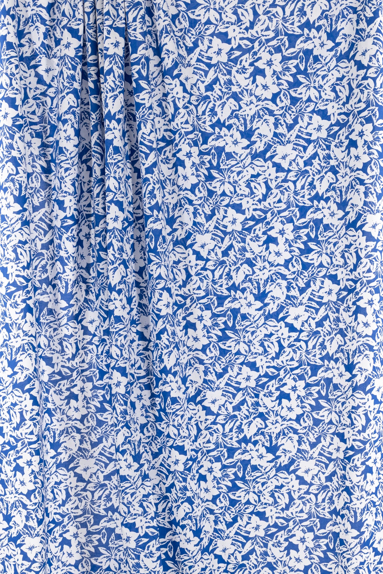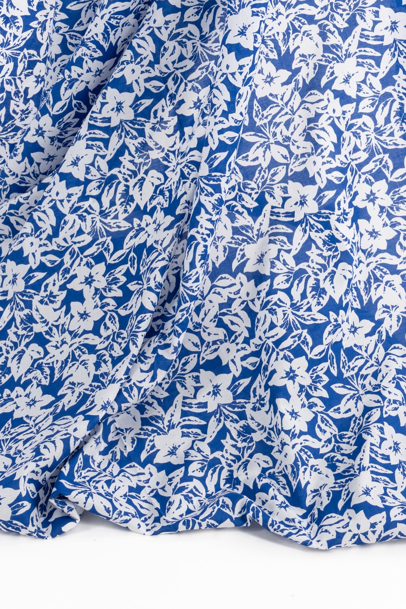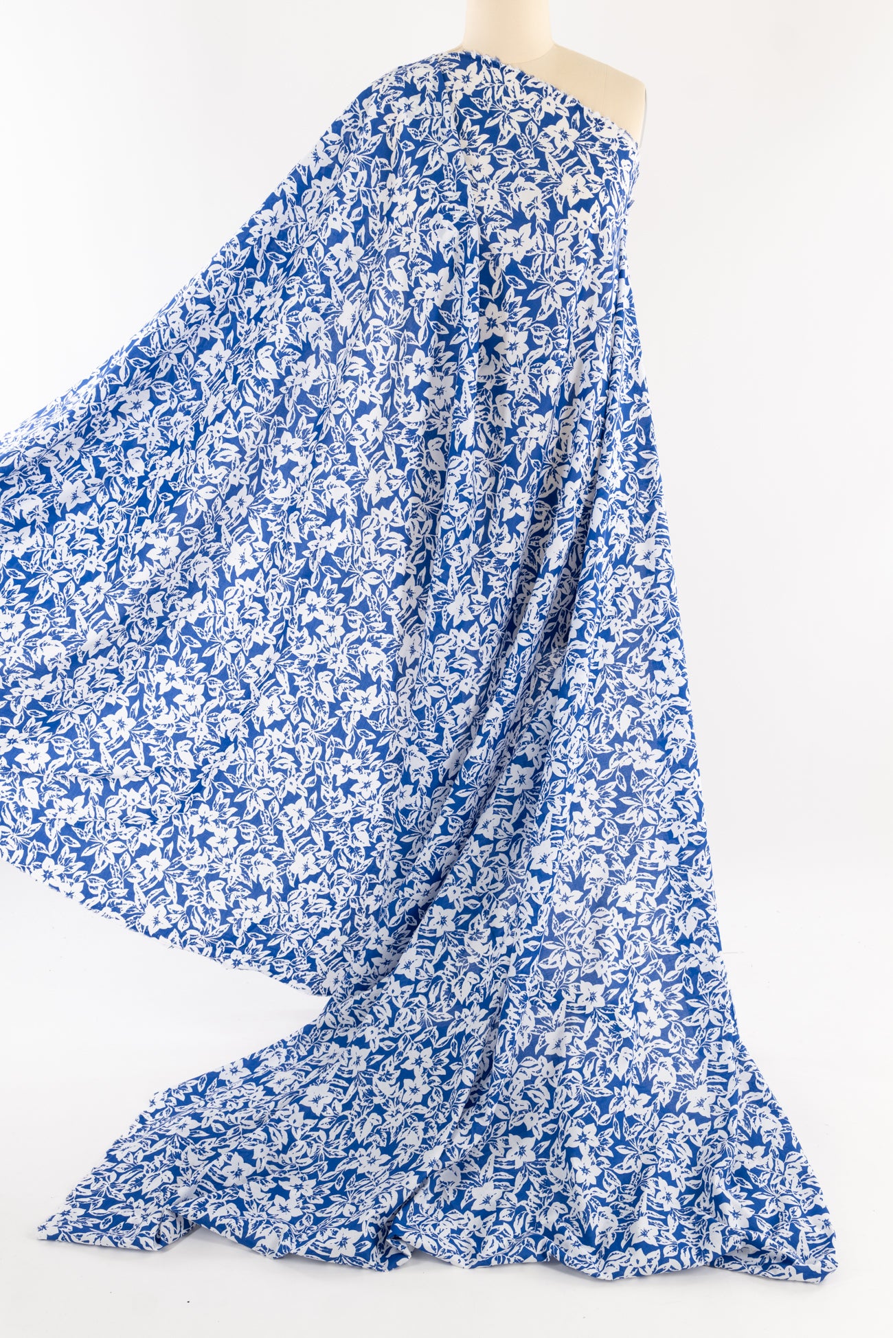 Fetching floral in a lovely lapis blue on white. Impeccable quality deadstock from an Japanese mill is a fine grained light/shirting-weight, with a soft smooth hand, 12" repeat and light airy drape. Right for a shirt, tunic, dress, skirt, soft pants, kimono, caftan, men's or children's.