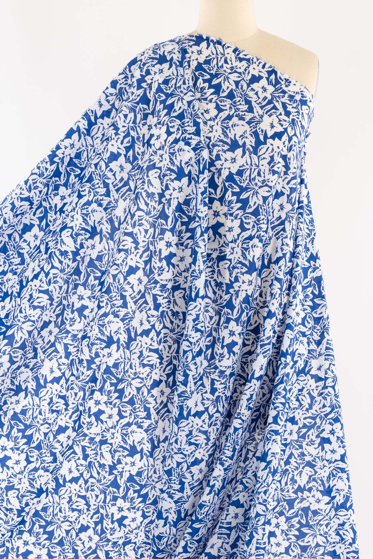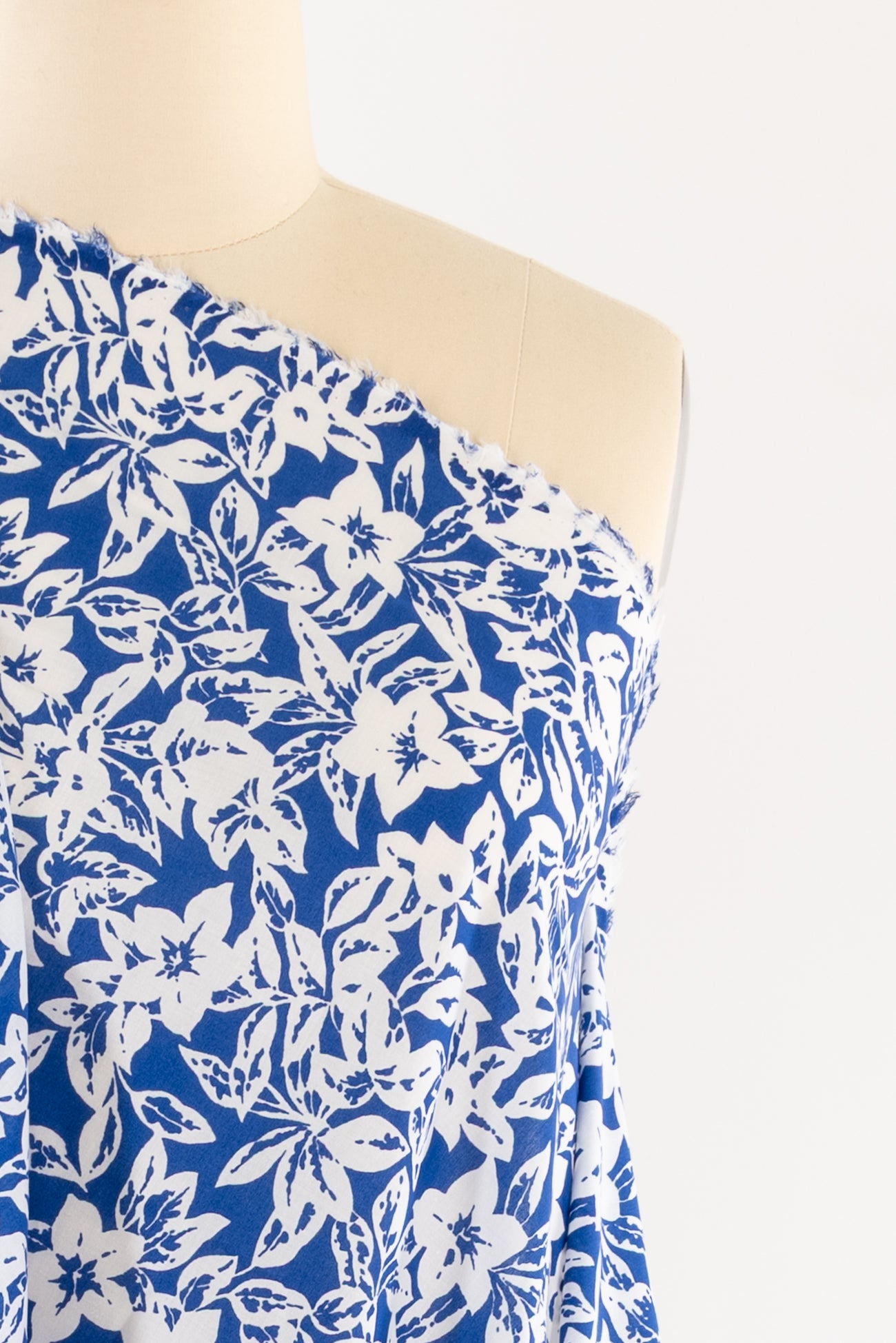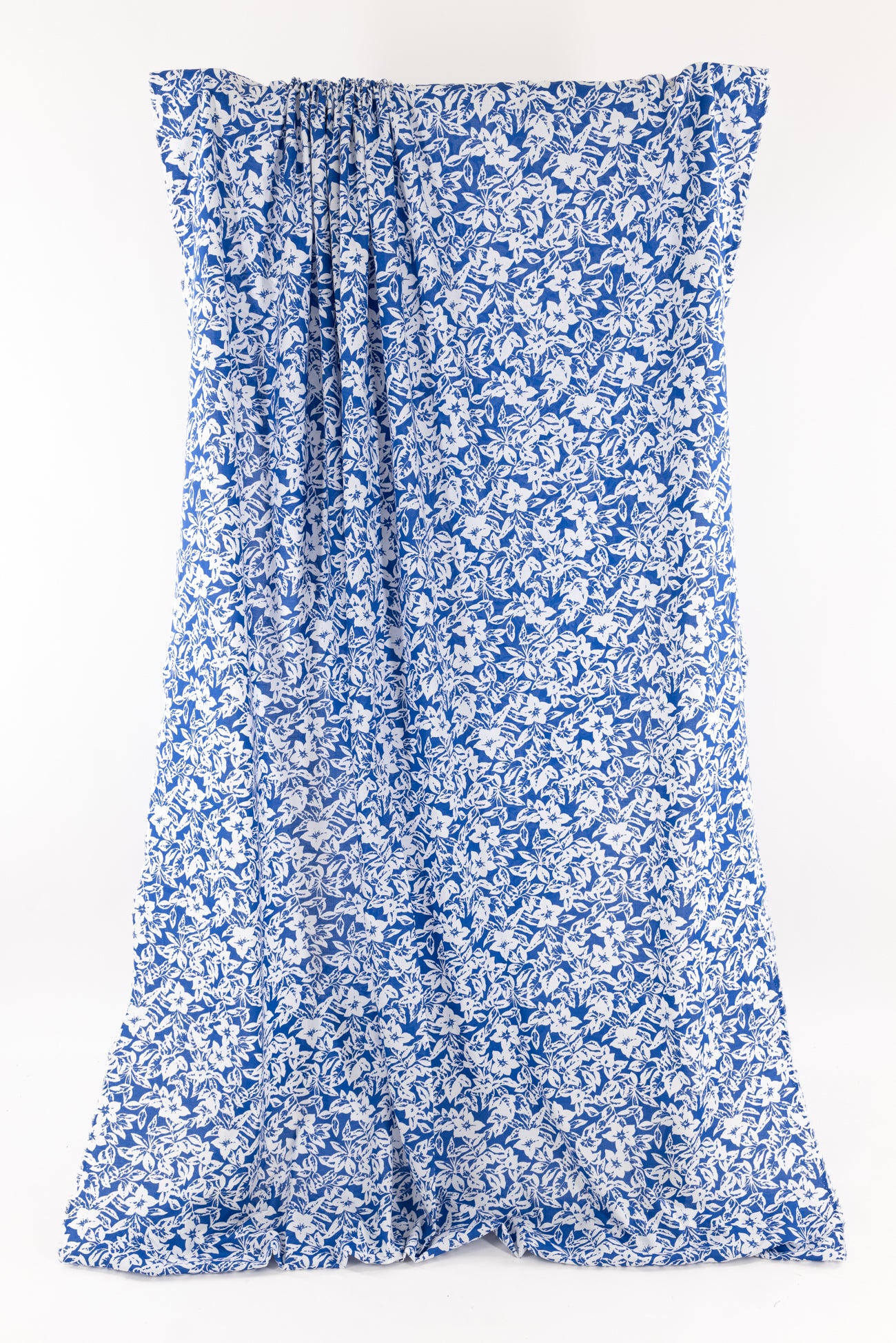 Fetching floral in a lovely lapis blue on white. Impeccable quality deadstock from an Japanese mill is a fine grained light/shirting-weight, with a soft smooth hand, 12" repeat and light airy drape. Right for a shirt, tunic, dress, skirt, soft pants, kimono, caftan, men's or children's.