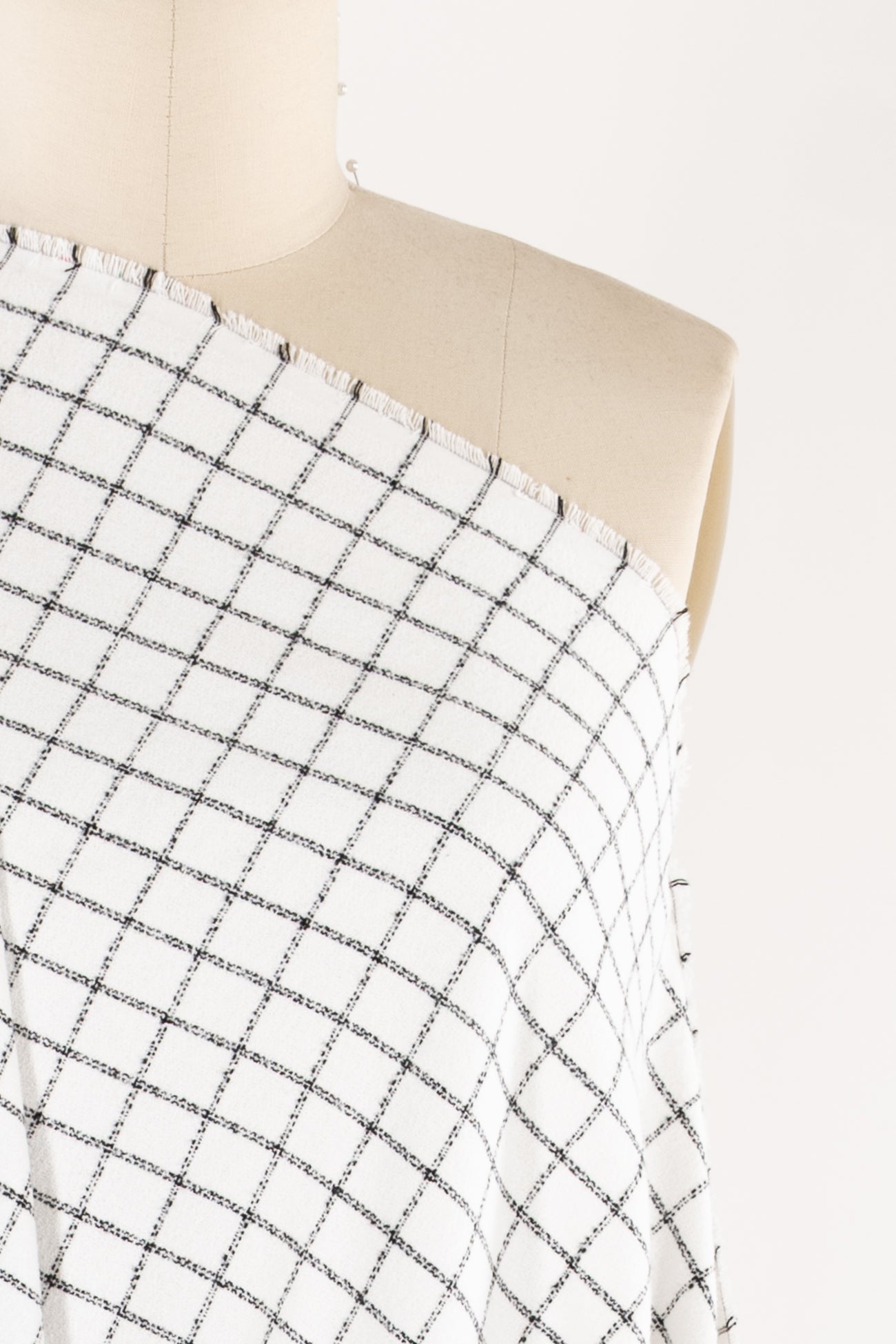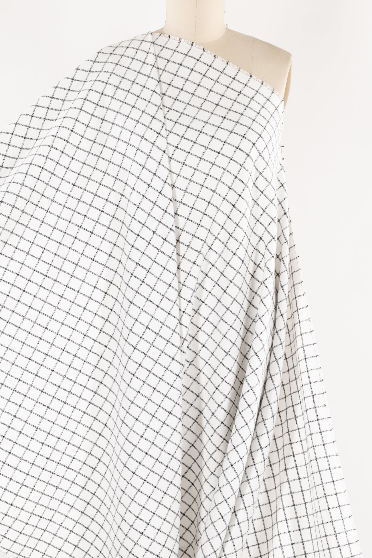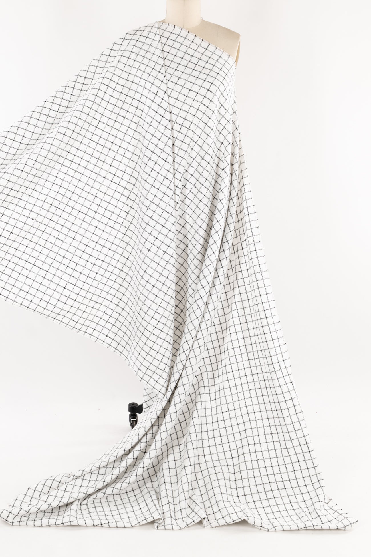 Cheerful checks in black on white in an exceptional quality cotton flannel. Fine quality deadstock, milled in India, is light/mid-weight, yarn dyed, with a soft hand, a brushed finish on both sides so it's reversible, with a 1" repeat and a soft malleable drape. Delicious to wear. Right for a shirt, dress, vest, tunic, men's, children's, workwear, caftan, pj's or robe.