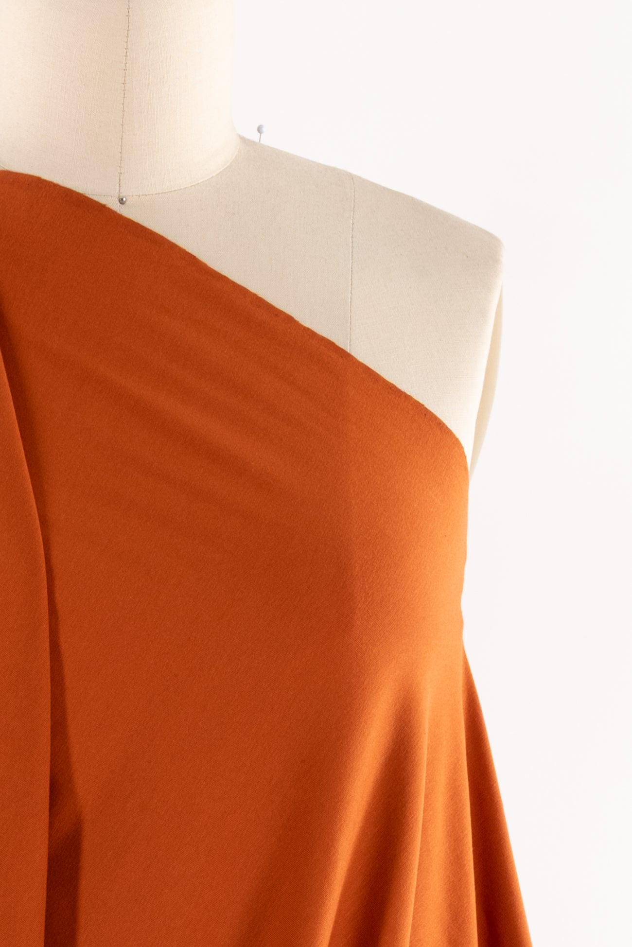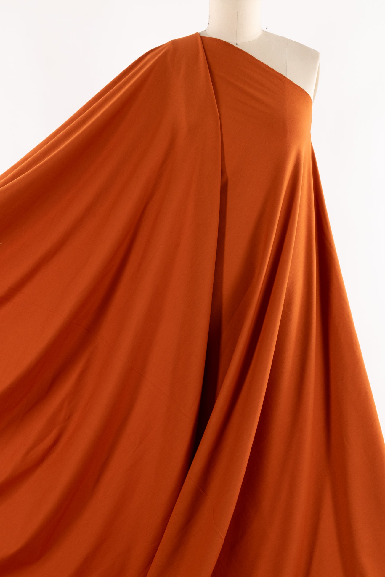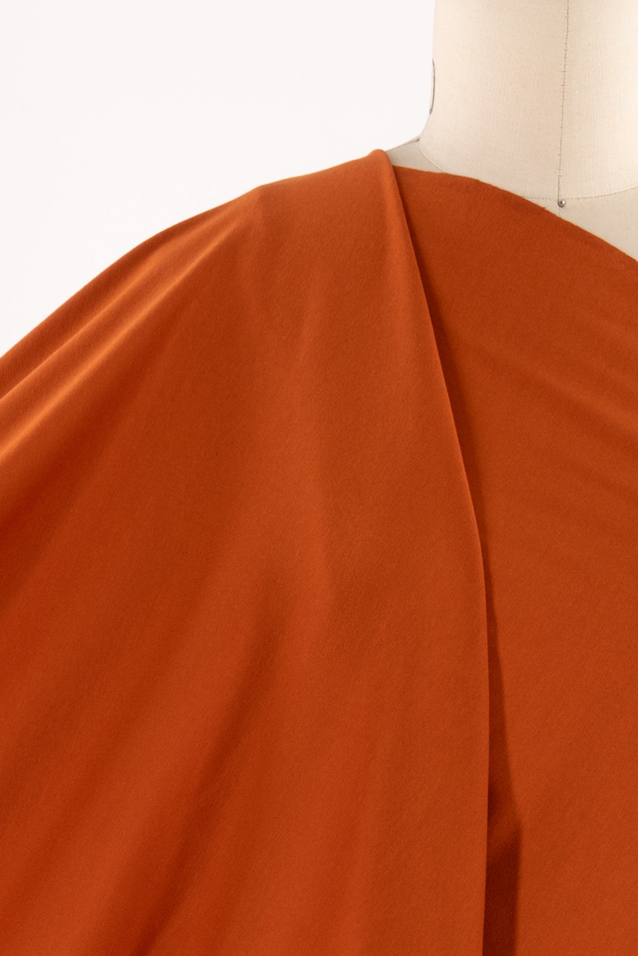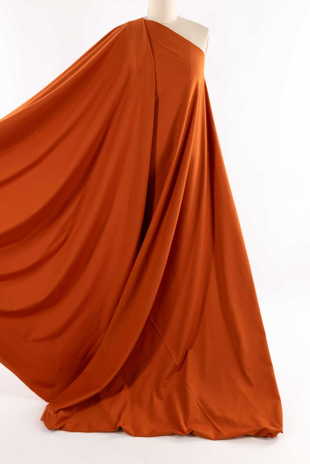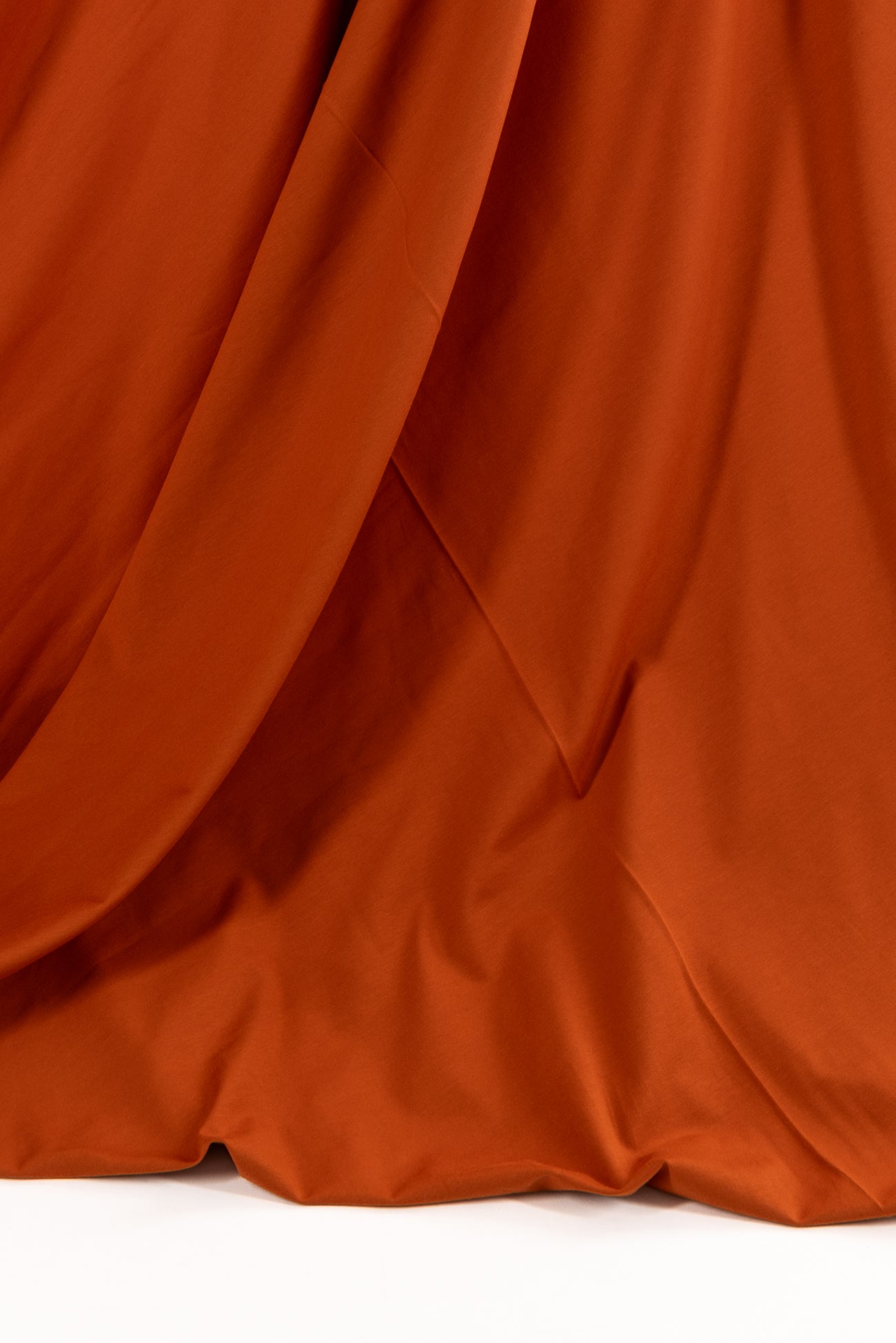 Yummy yam in an impeccable European quality cotton/spandex jersey knit, produced in Denmark. Light/mid-weight, opaque and will skim the body in a flattering way. It has a soft, smooth hand, fluid drape, 4-way stretch and some rolling at the cut edge. Right for a t-shirt, tunic, dress, soft pants, leggings, cardigan, skirt, or loungewear, as well as men's or children's. Oeko-Tex® certified.