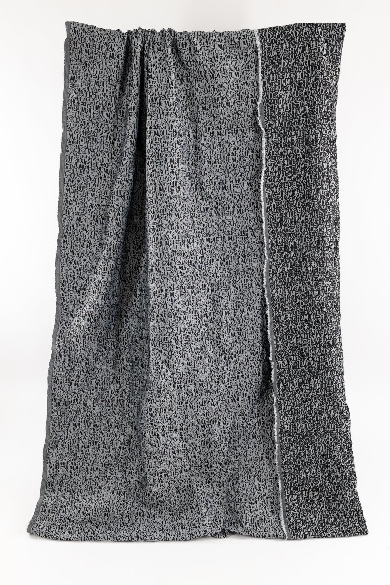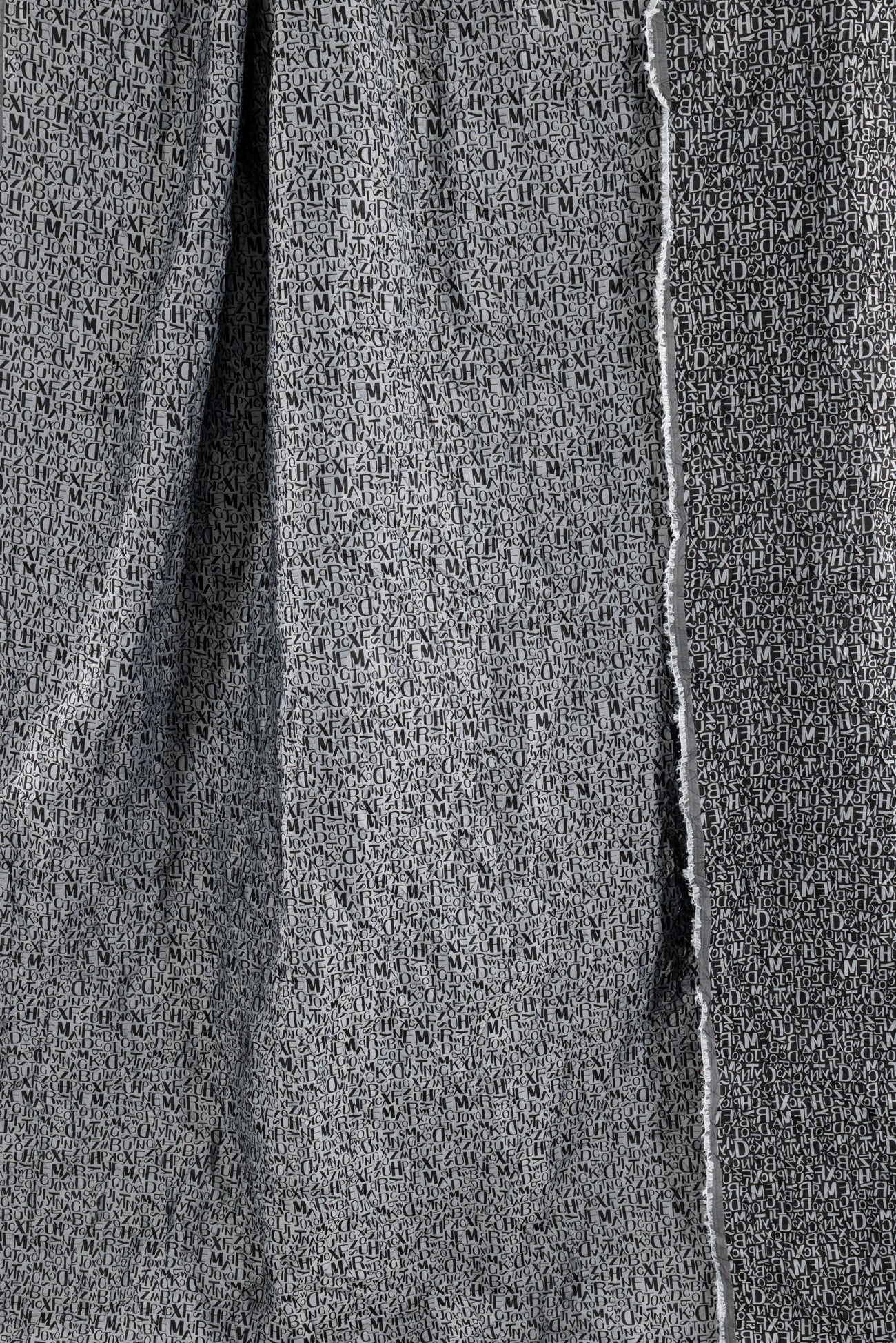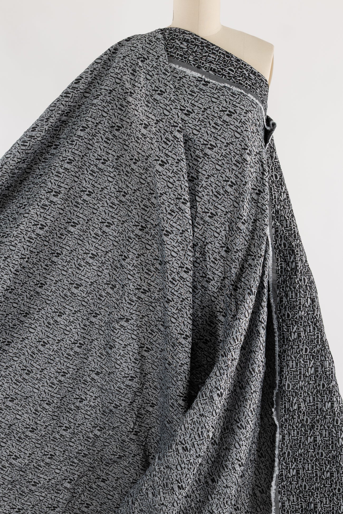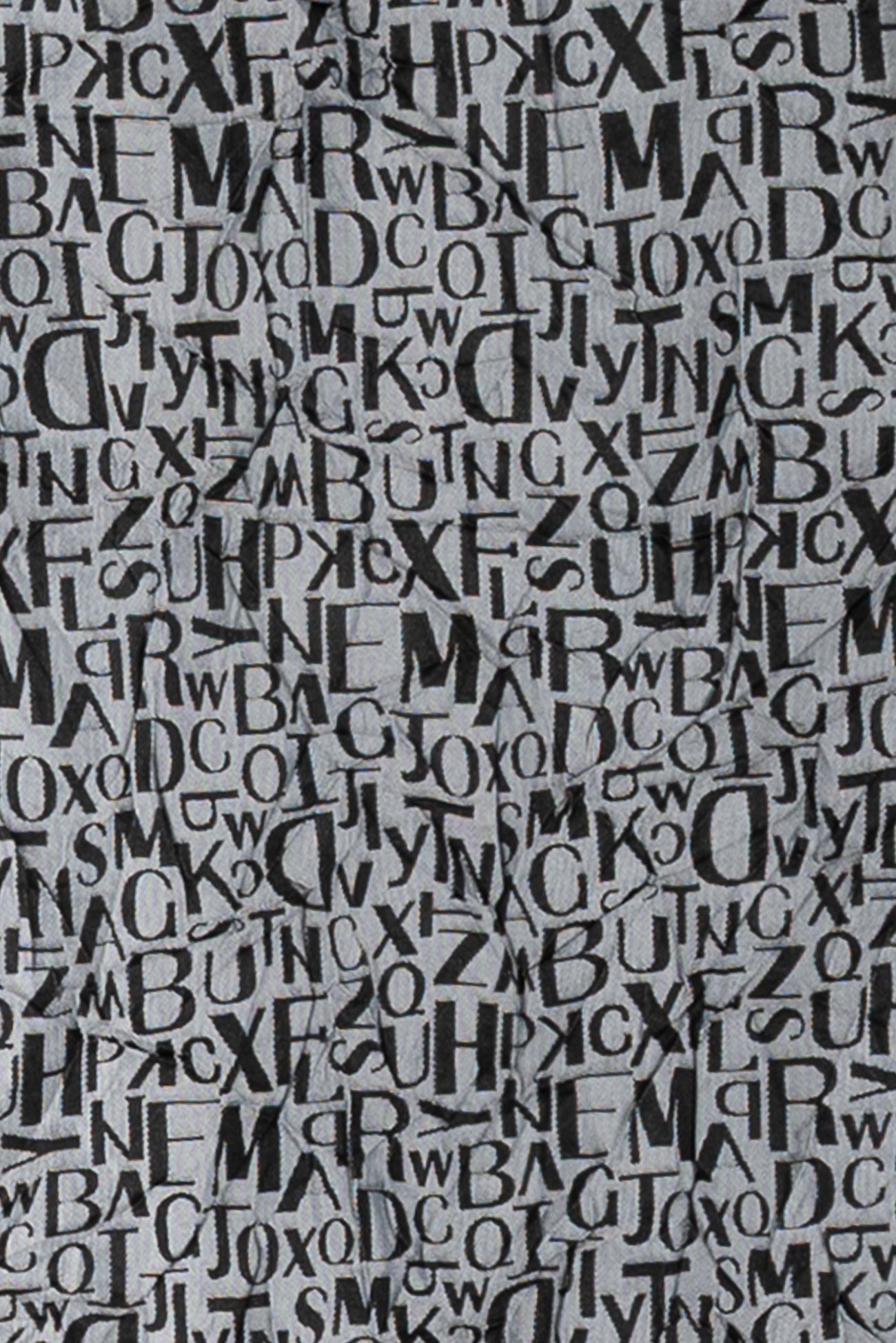 Fab, fun and funky tumbled text in a black and gray viscose/poly jacquard, permanently crinkled deadstock from an LA designer. The pattern is reversible, use either or both sides. Light/mid-weight with a light drape, 16½" repeat and crinkled hand. Right for a dress, shirt, tunic, soft pants, light jacket or duster coat, skirt, vest or kimono.