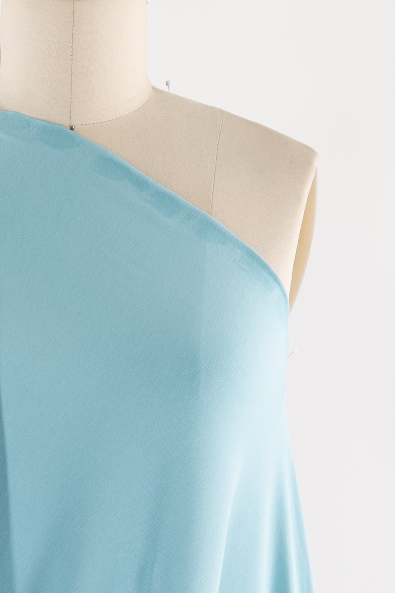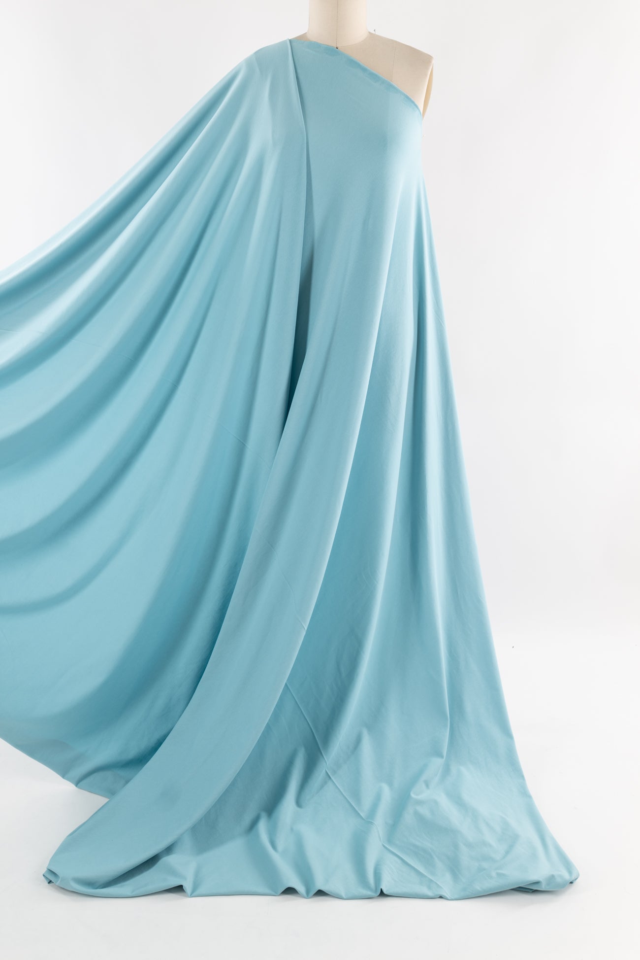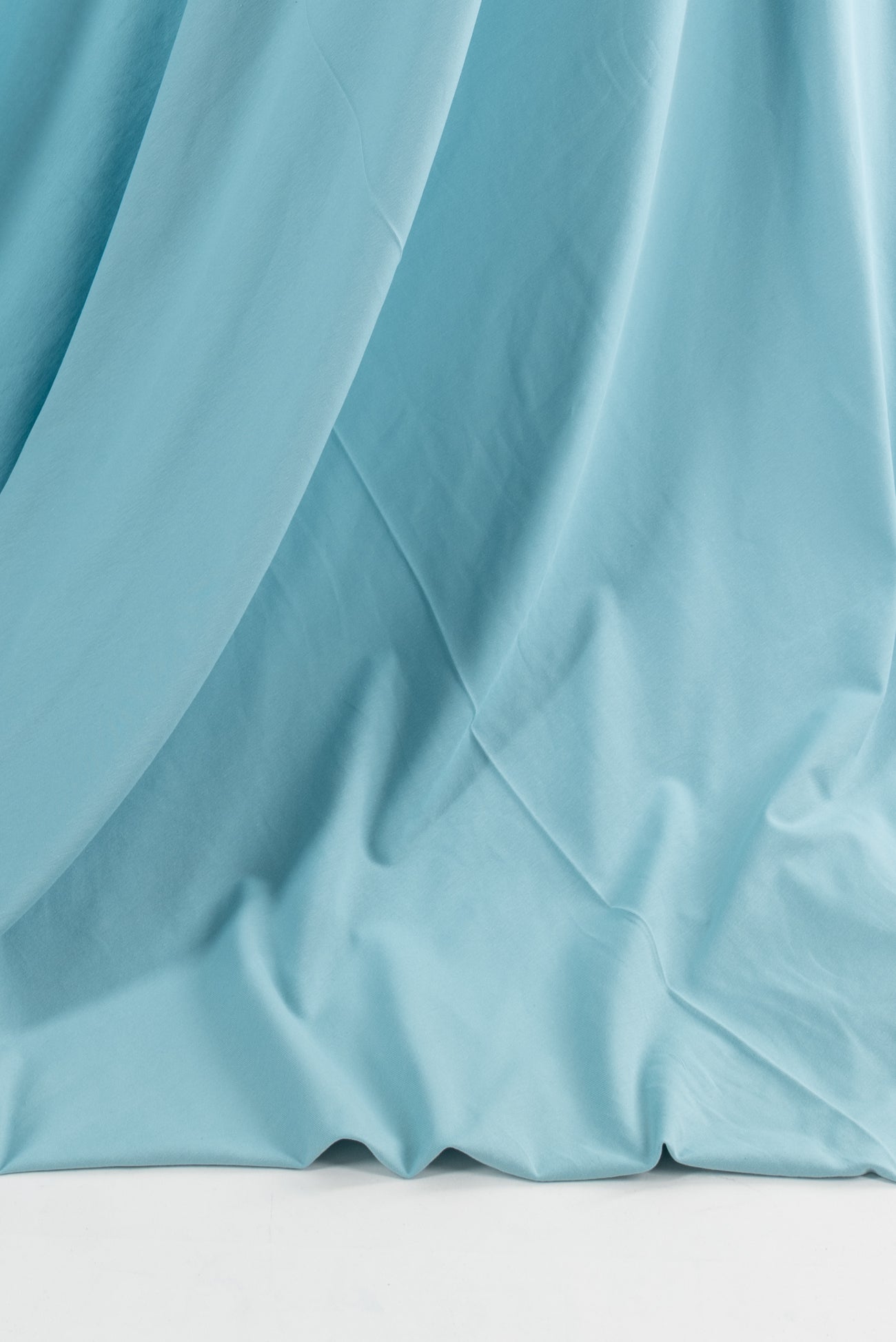Aqua blue in an impeccable European quality cotton/spandex jersey knit, produced in Denmark. Light/mid-weight, opaque and will skim the body in a flattering way. It has a soft, smooth hand, fluid drape, 4-way stretch and some rolling at the cut edge. Right for a t-shirt, tunic, dress, soft pants, leggings, cardigan, skirt, or loungewear, as well as children's or men's clothing. Oeko-Tex® certified. Limited quantity.
