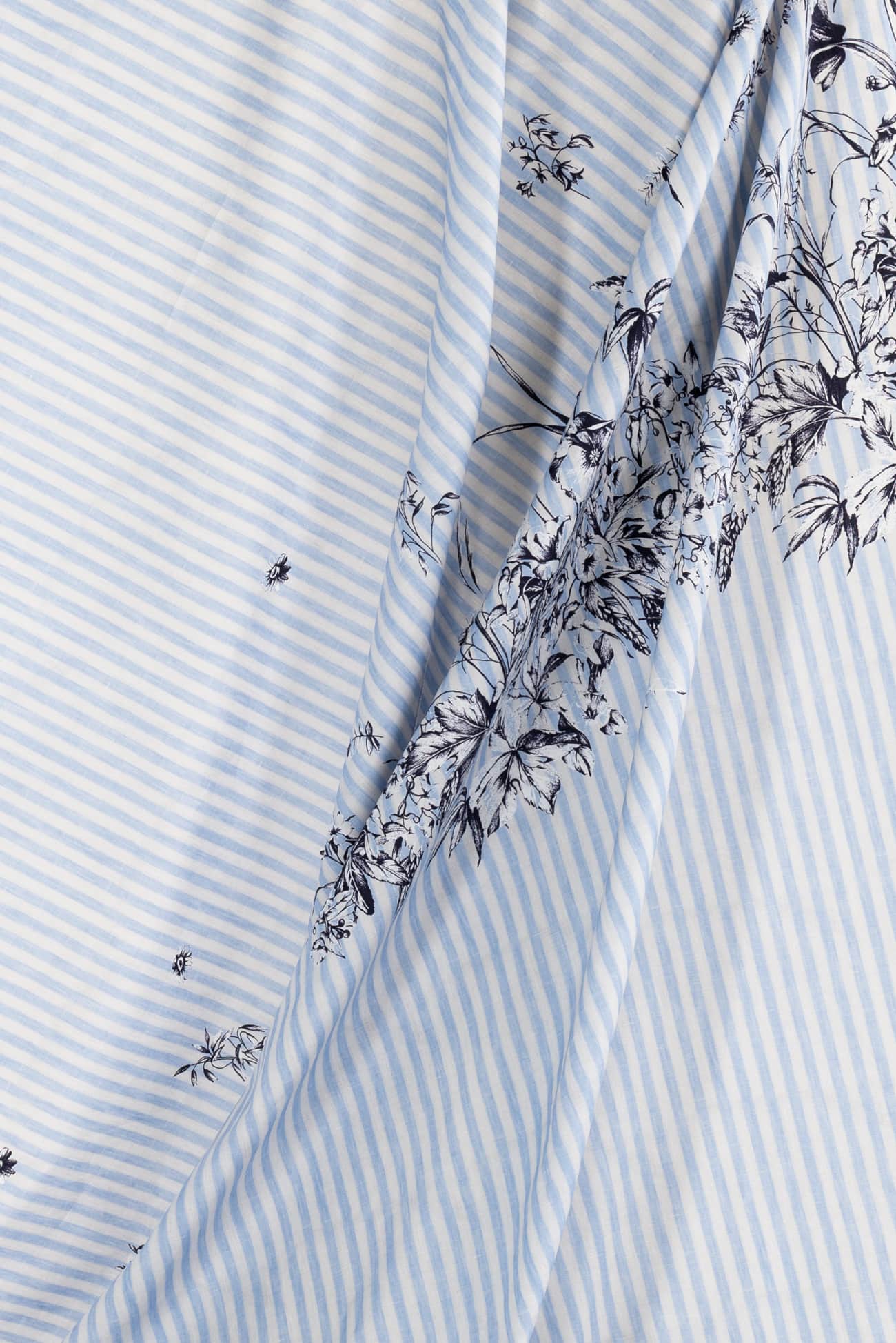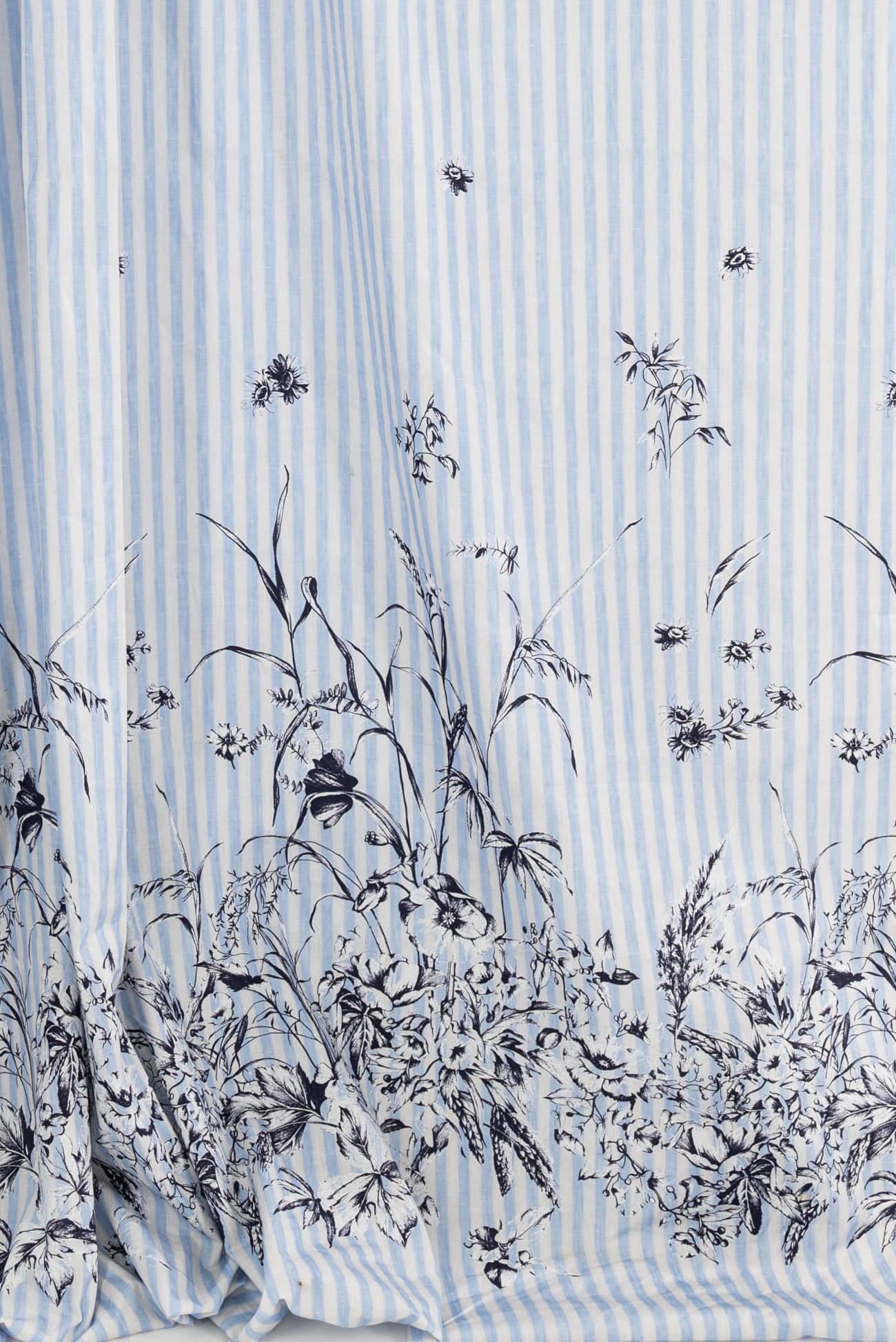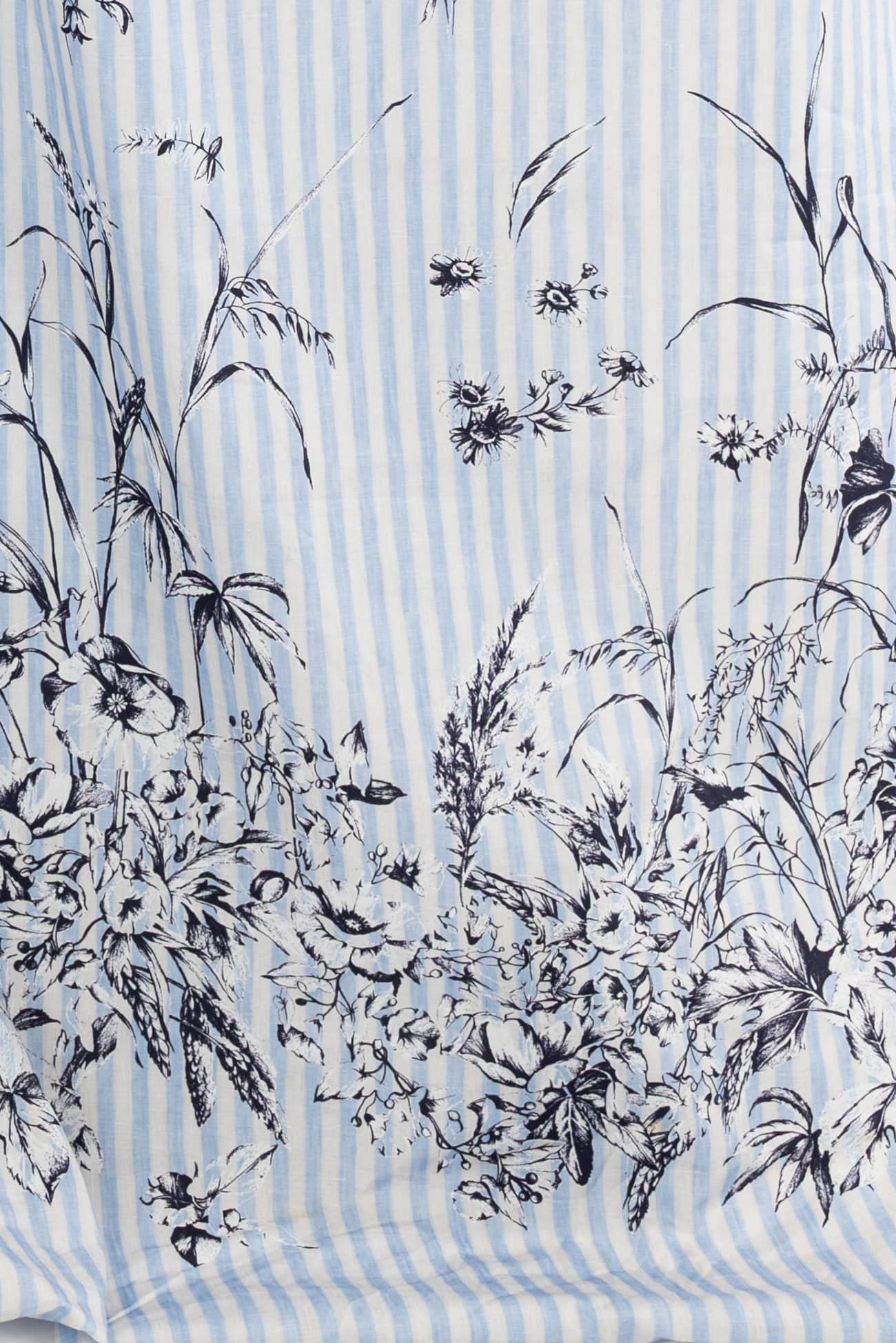 Charming panel stripe+floral print with a modern vibe, soft, faded blue and white printed stripes overprinted in a black etched floral, on impeccable cotton, deadstock from an Italian mill produced for NYC designer Maria Corneo/Zero. Shirting weight with a smooth, cool hand,and soft drape. The weight is right for a shirt, tunic, dress, skirt, soft pant, jumpsuit, caftan, kimono, men's and children's clothes. Panel measures 57" wide x 63" long and is cut with a few inches of stripe left at the bottom of the print. If you order more than one panel we will cut in one piece. One way design. The printed border measures 31".