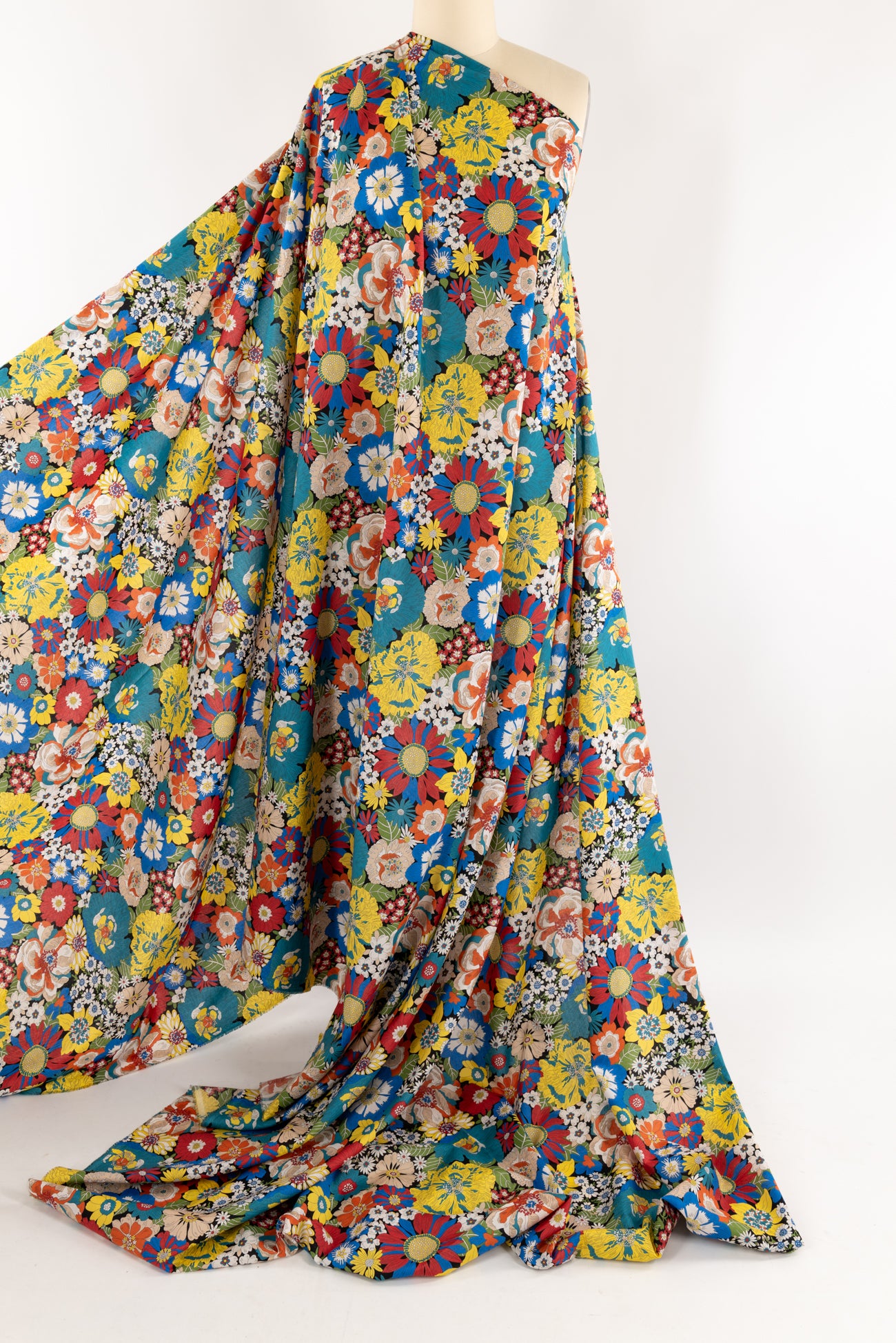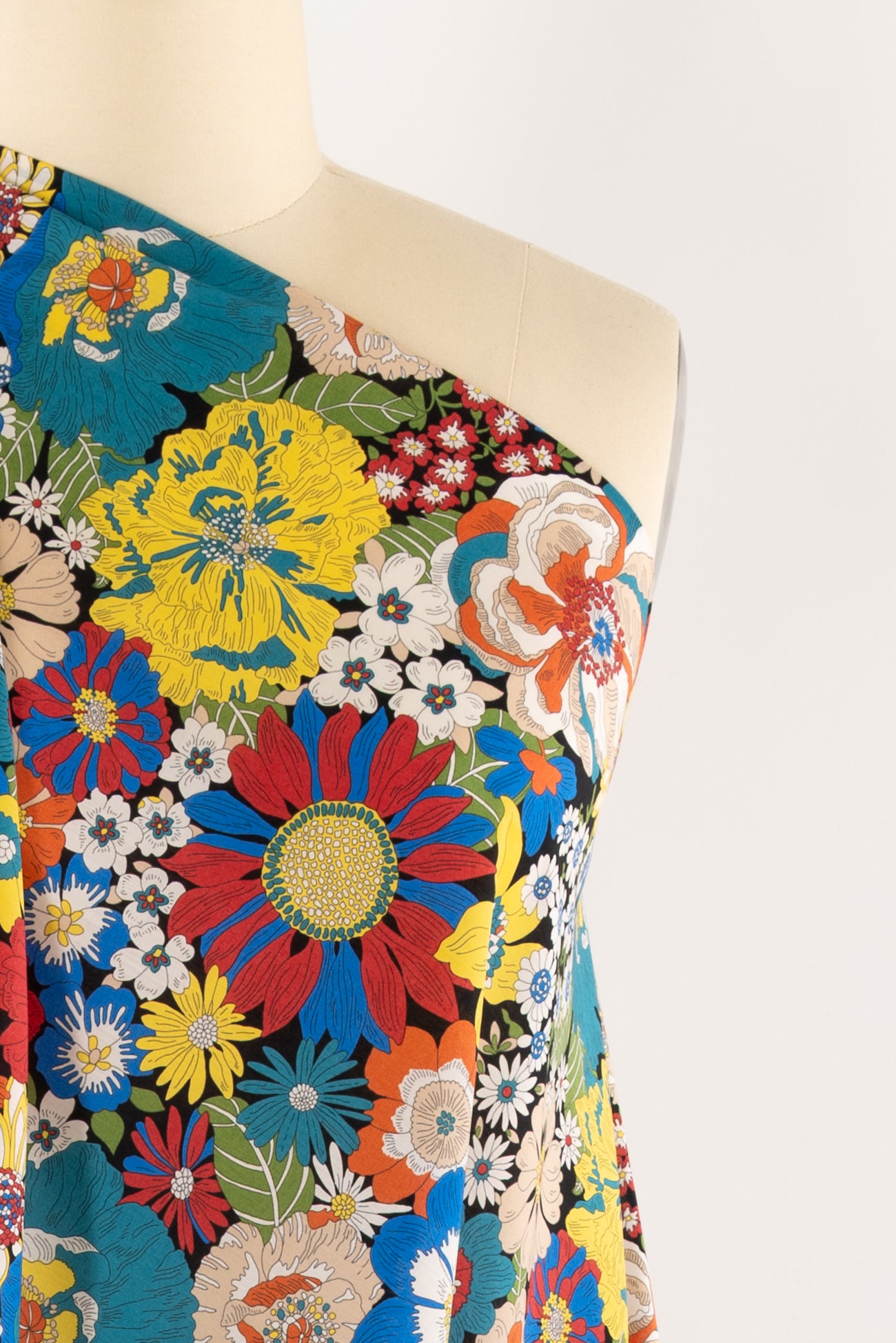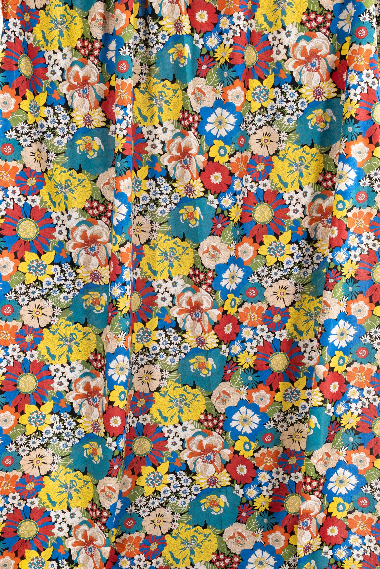 Vibrant classic floral motifs in rich colors on black, inspired by Liberty's archival studio designs. Produced in Northern Italy for Liberty of London, printed on the renowned and exceptional Tana Lawn, the cotton that behaves and feels like silk. Fine-grained, with a cool, smooth, soft hand, fluid drape and depth of color. Perfect for a shirt, dress, skirt, tunic, caftan, loungewear, children's, accessories, or home decor. Right to wear everyday or for statement pieces. One-way design, 12¼" repeat. OEKO-TEX® certified.