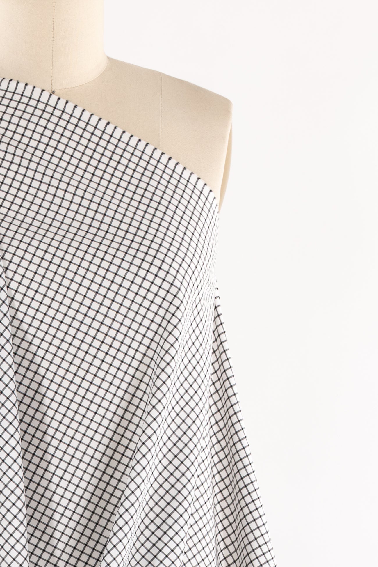 Always appealing windowpane check in black and white in a beautiful yarn-dyed shirting weight cotton woven. Designer deadstock from an Italian mill is lightweight with a smooth matte hand, ¼" repeat and light drape. Perfect for a shirt, tunic, top, dress, loungewear, caftan, men's or children's.