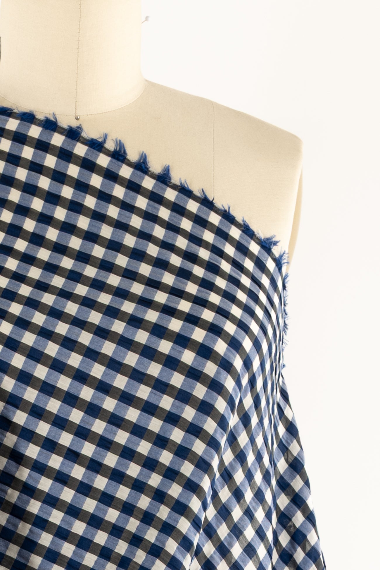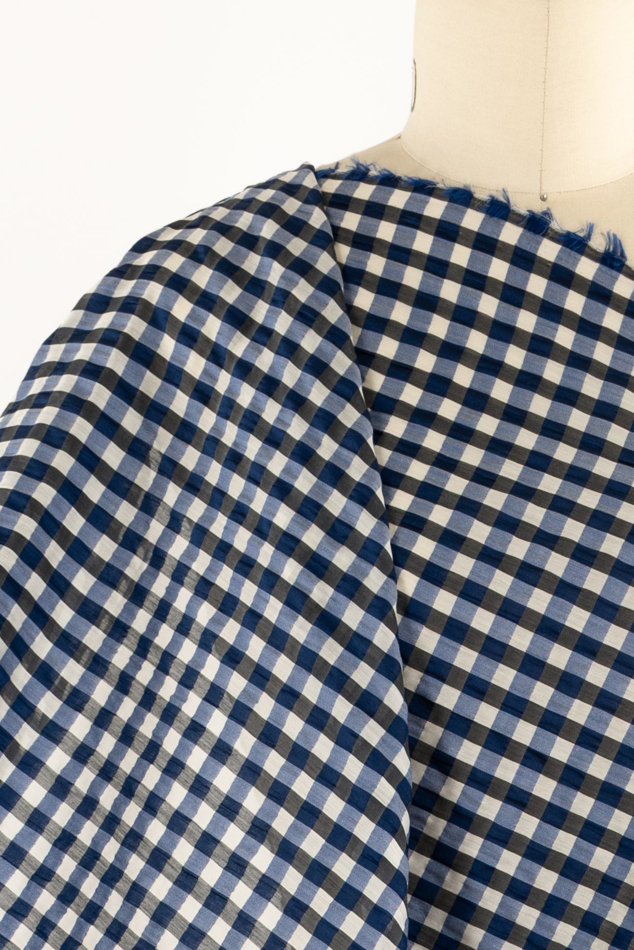 Cobalt Shadow Italian Gingham Cotton Blend Seersucker Woven