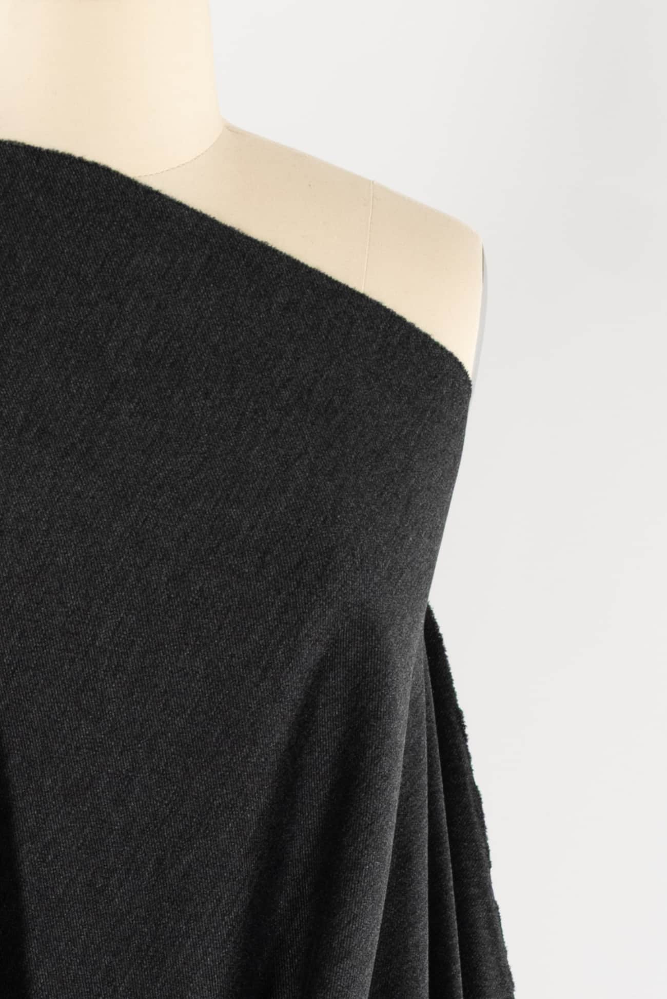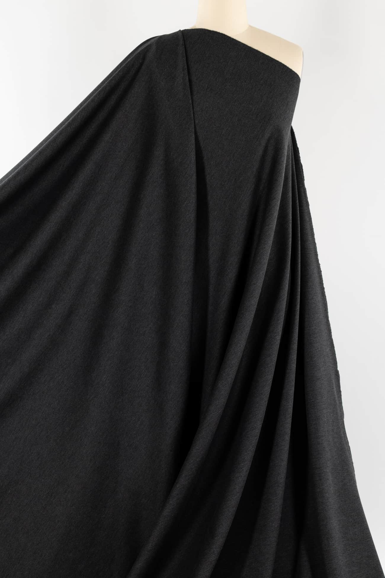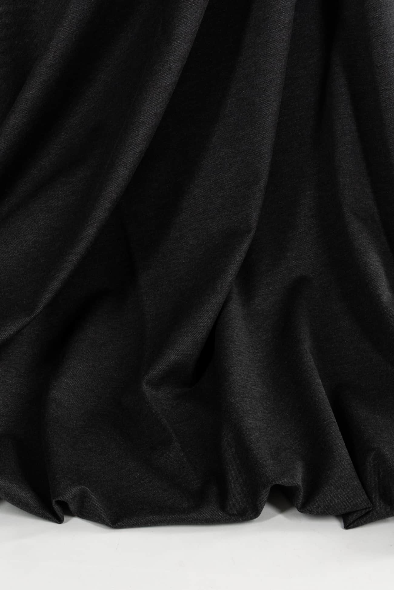 Gorgeous gray lightly heathered rayon double knit. With a cool, dry matte hand, this is an appealing fine double knit that will be easy to sew and wear and is great for travel and wardrobe building. I see this kind of knit used in fine French ready to wear for t-shirts, tops, structured skirts, pants, dresses etc. Light/midweight with a smooth hand, lightly structured drape, 4-way stretch with good recovery and no rolling at the cut edge so a seam finish is optional. The weight is perfect for slimming pants, t-shirt, cardi, dress, light jacket, coat or vest, hoodie or activewear.