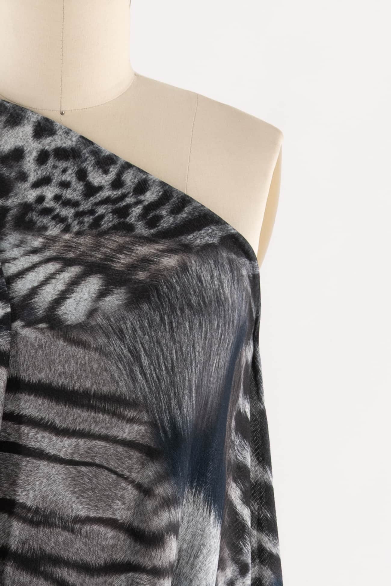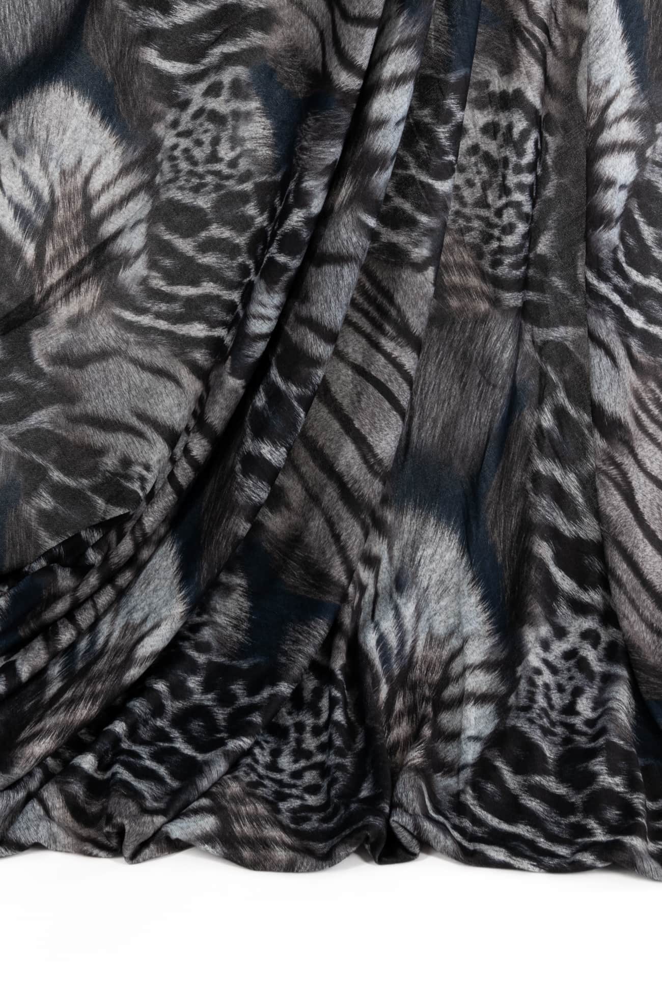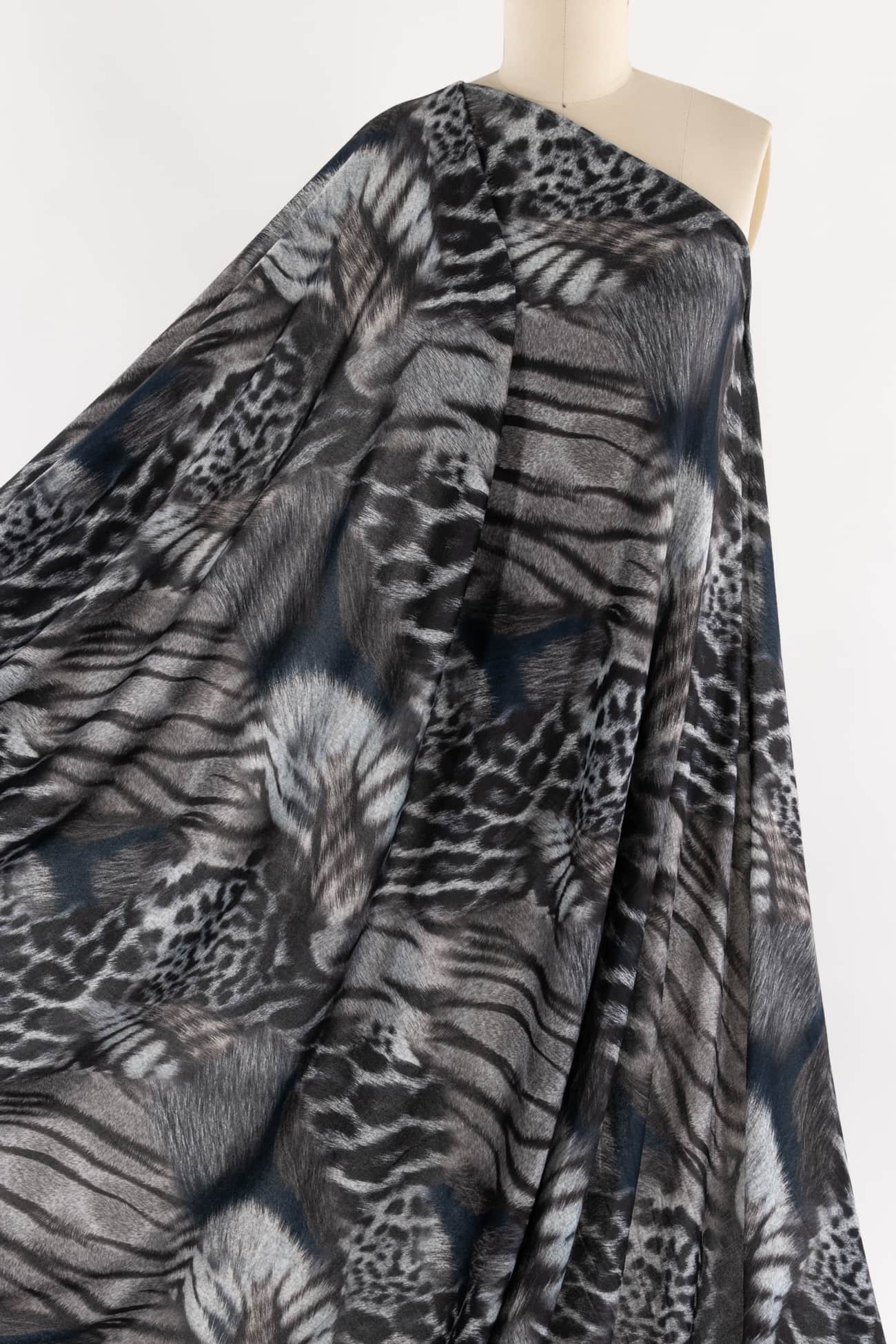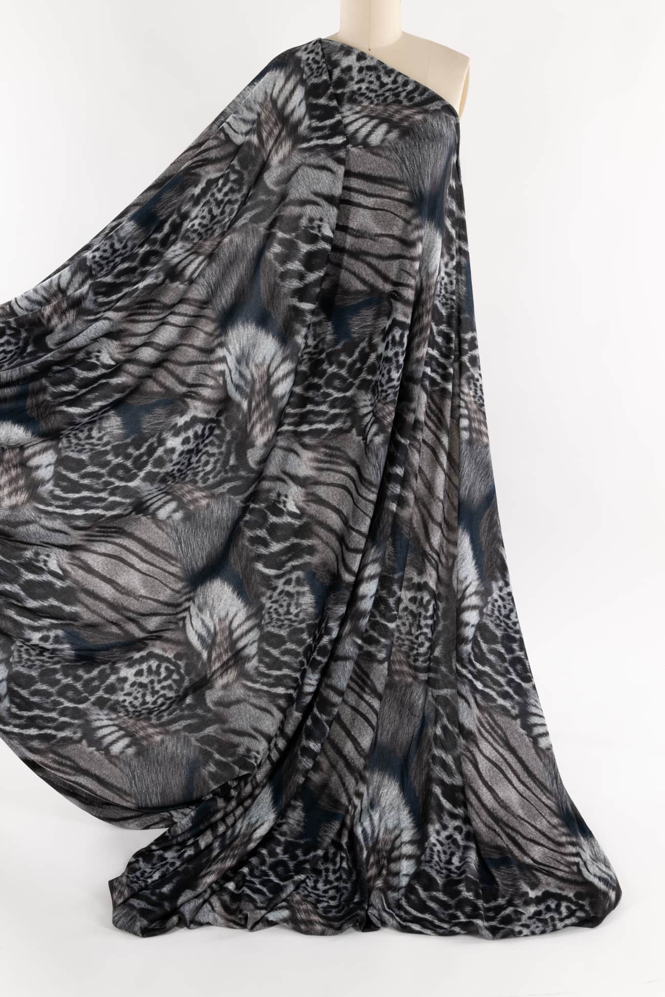 Sophisticated sweater knit adorned with an abstract array of animal motifs. Deadstock from a NYC designer. Mid/light weight knit with a super soft hand, crosswise stretch with good recovery, cozy on the back side, an airy drape, opaque with a 23¾" repeat and some rolling at the cut edge. Right for a sweater, cardigan, hoodie, dress, cardi, tunic, t-shirt or menswear. Limited quantity available.