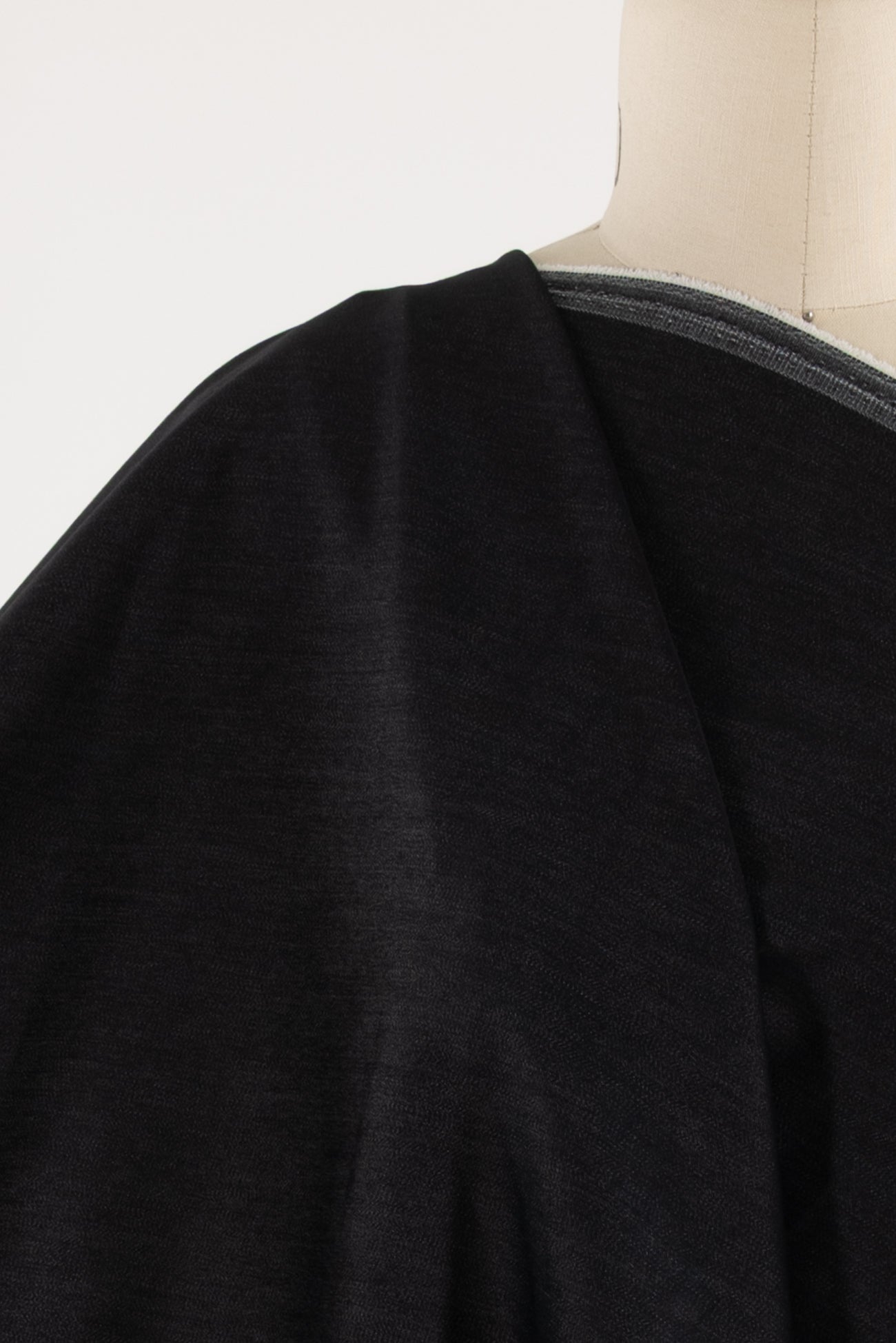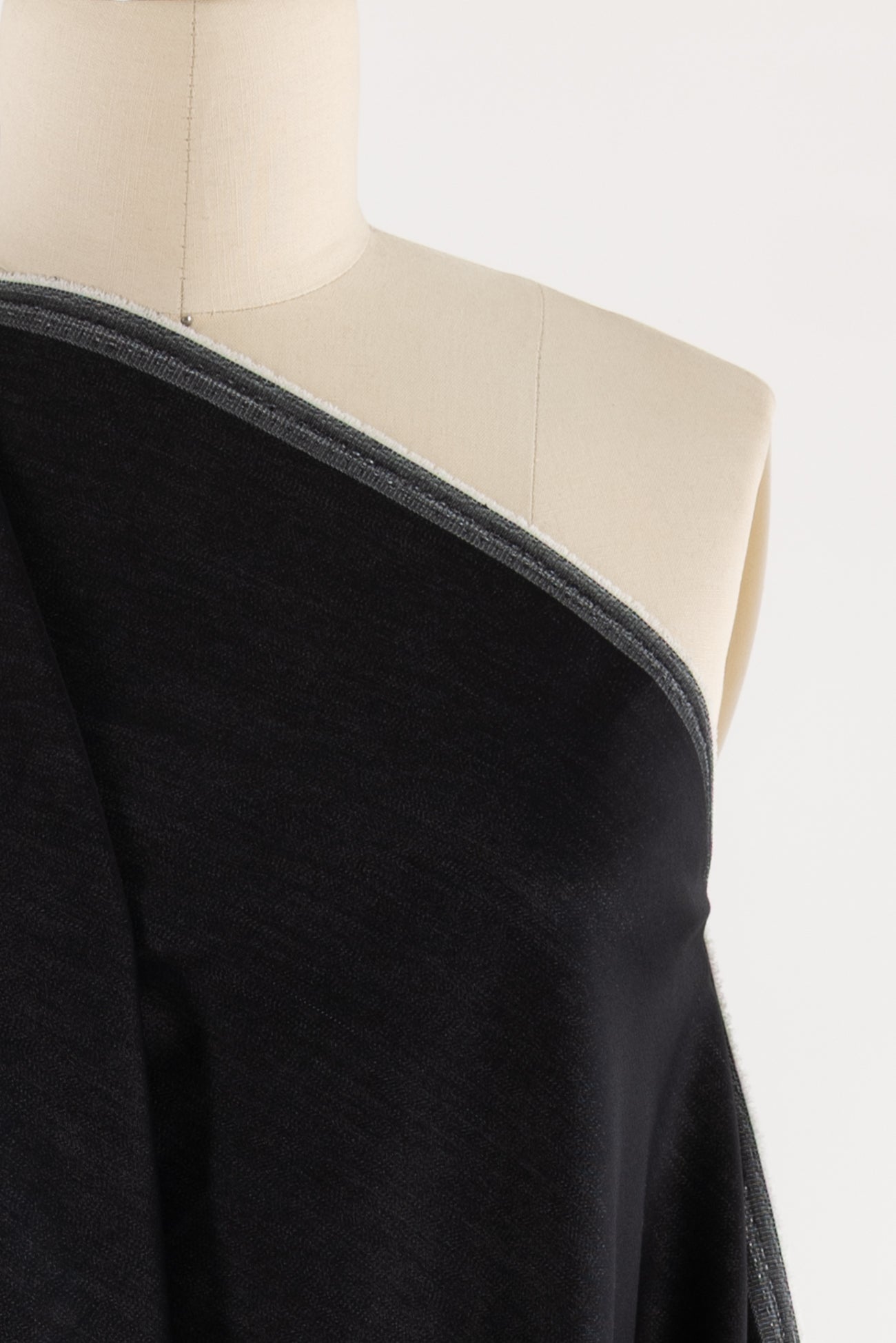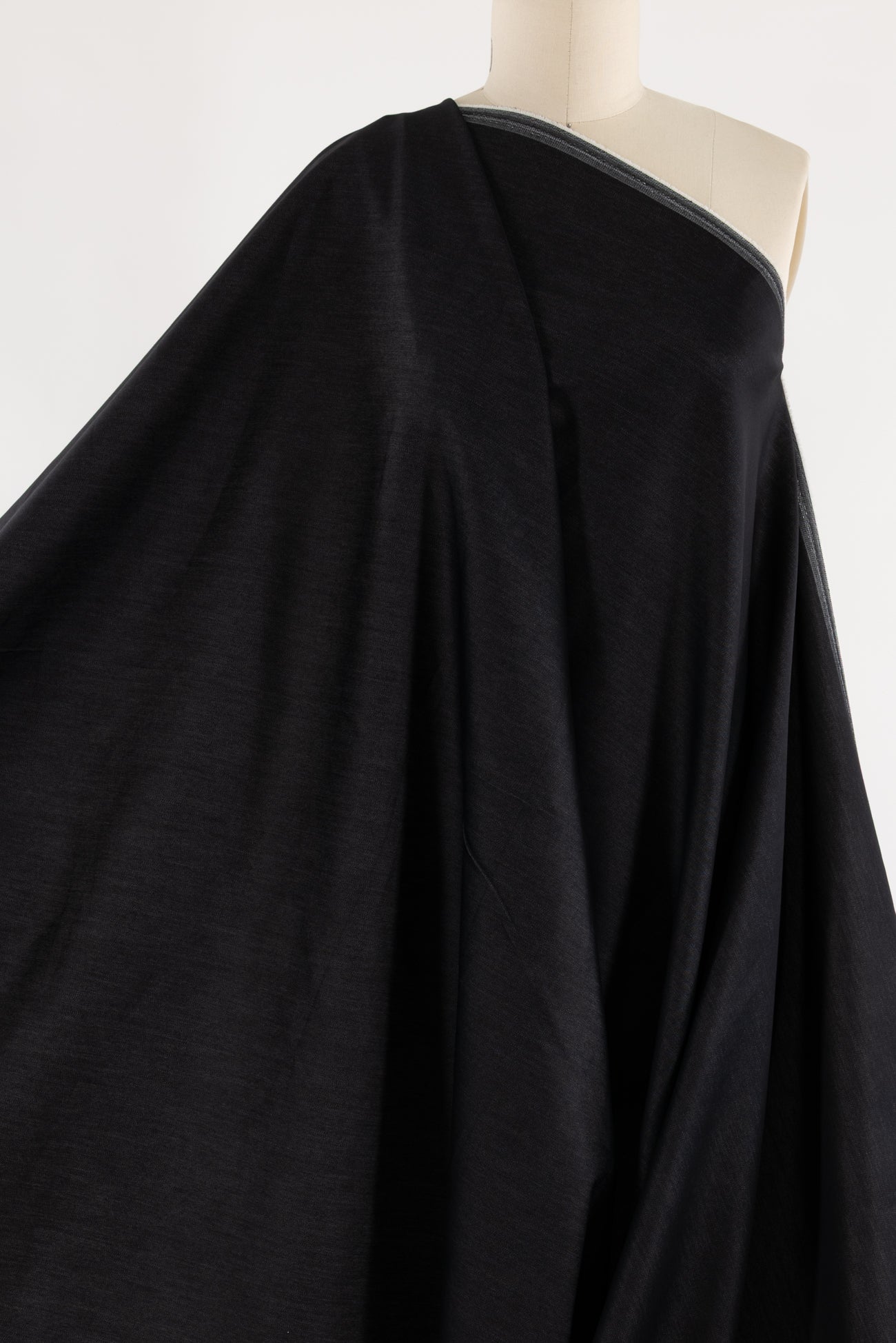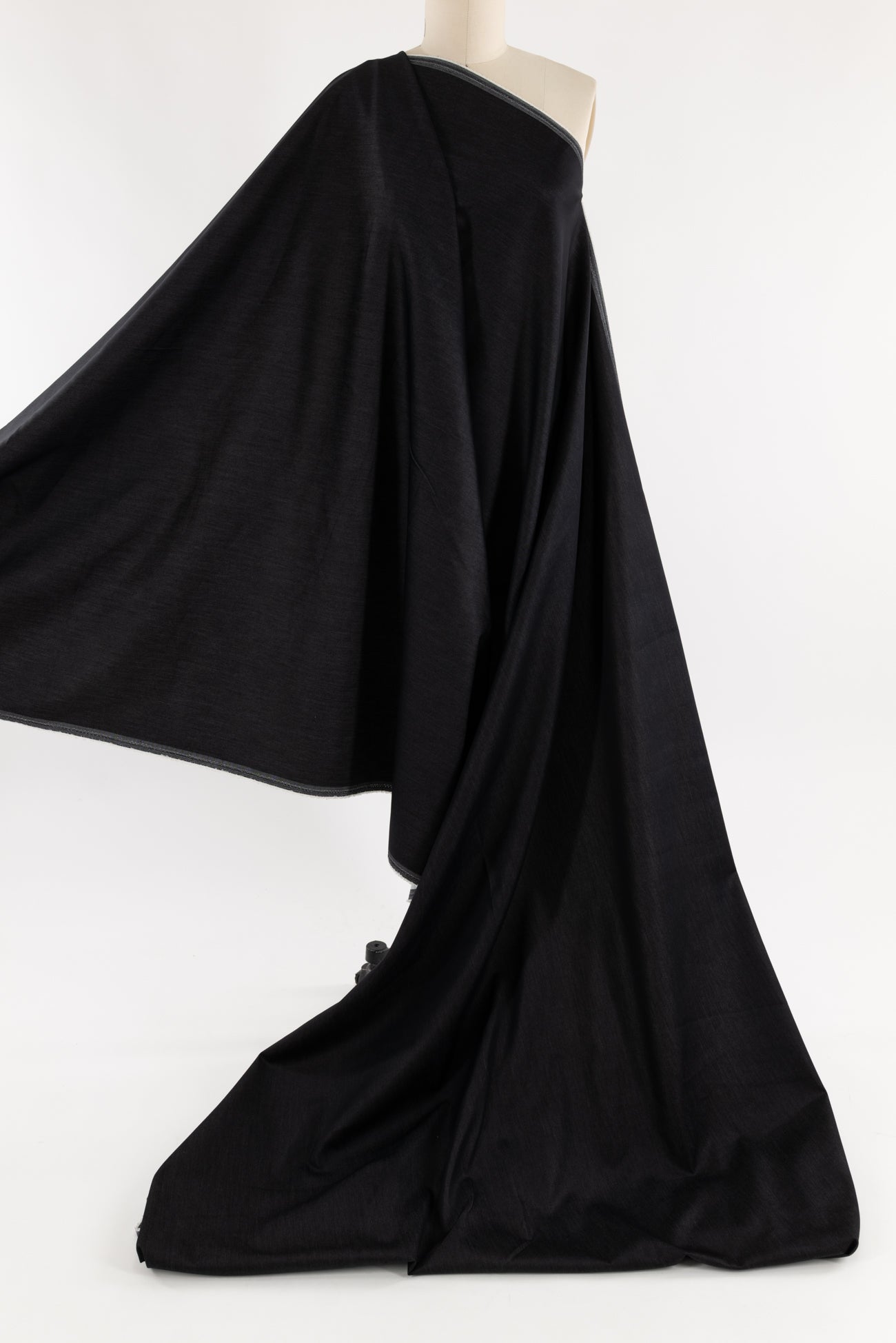 Rich charcoal gray stretch denim, fine quality deadstock from an LA designer. Light/mid-weight with a smooth hand, light drape and excellent crosswise stretch with good recovery. Right for a jacket, coat, jeans, dress, vest, pants, skirt, workwear, men's or children's. Limited quantity available.
