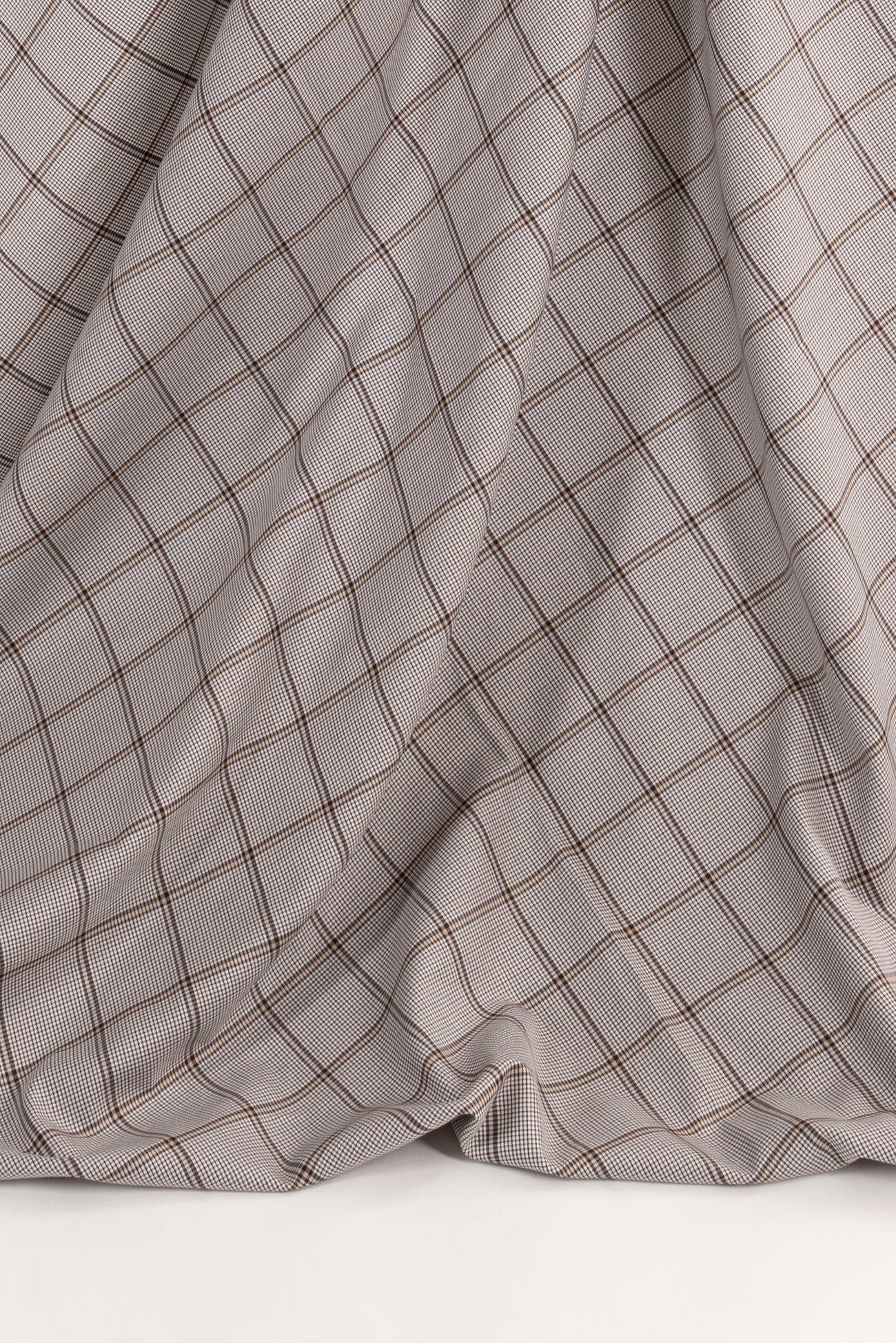 Becoming brown and gray plaid with tiny windowpane checks in a fine quality yarn-dyed shirting weight cotton woven. Designer deadstock from an Italian mill is lightweight with a smooth matte hand, 2" repeat and light drape. Perfect for a shirt, tunic, top, dress, loungewear, caftan, men's or children's. Limited quantity available.
