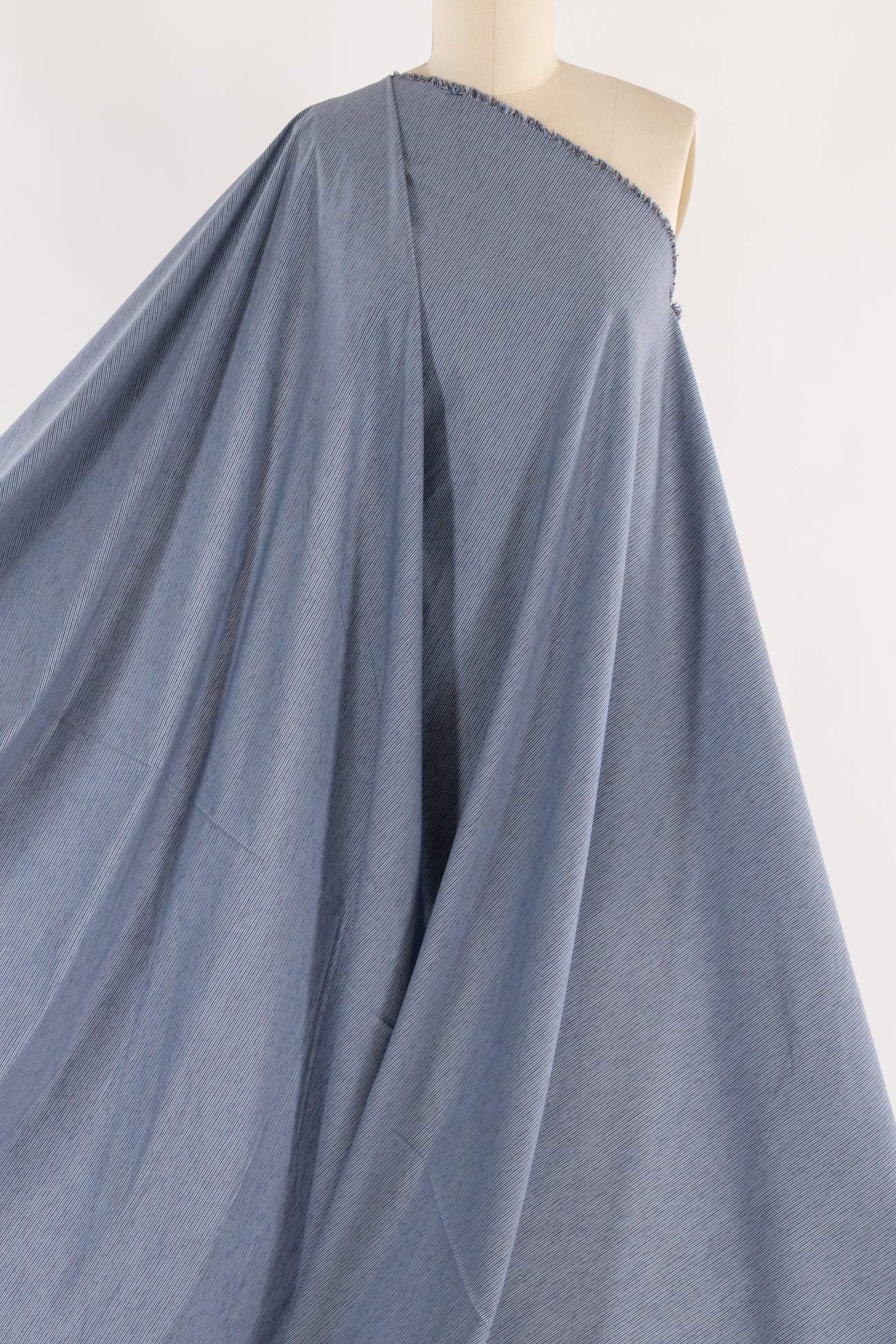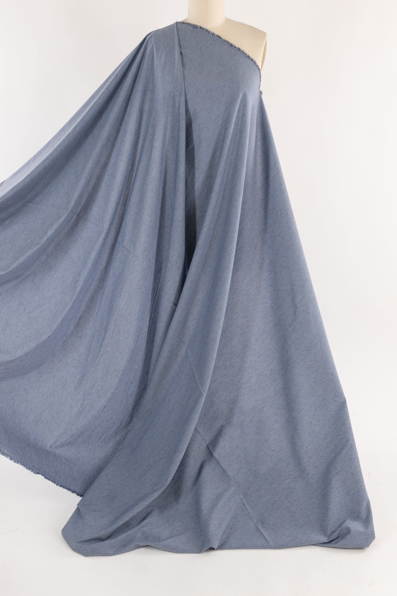 Tiny blue and gray mini stripes weave across a beautiful yarn-dyed shirting weight cotton. Designer deadstock from an Italian mill is lightweight with a smooth matte hand and light drape. Perfect for a shirt, tunic, top, dress, loungewear, caftan, men's or children's. Limited quantity available.
