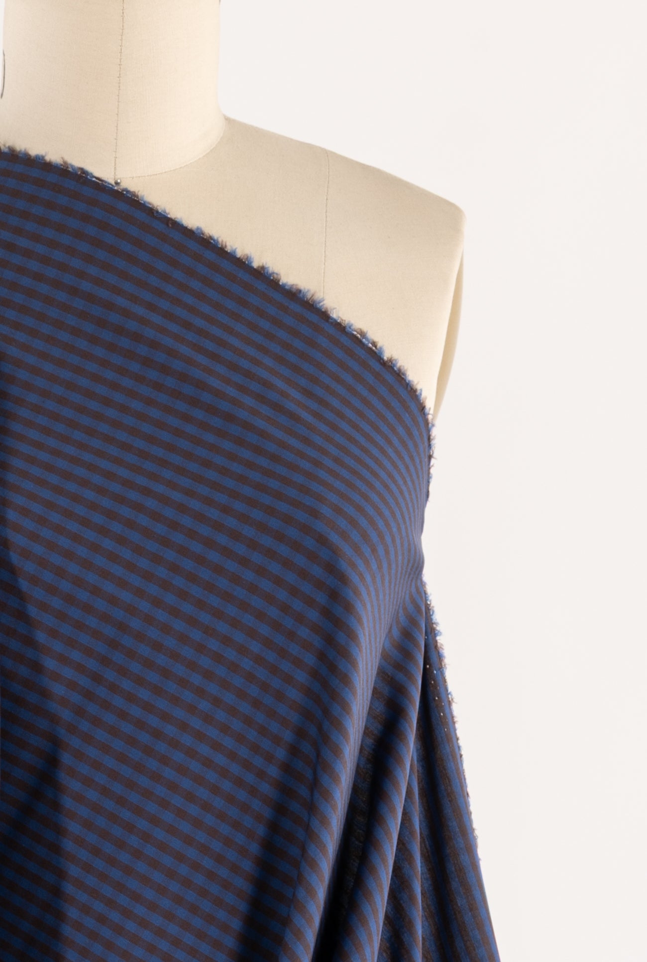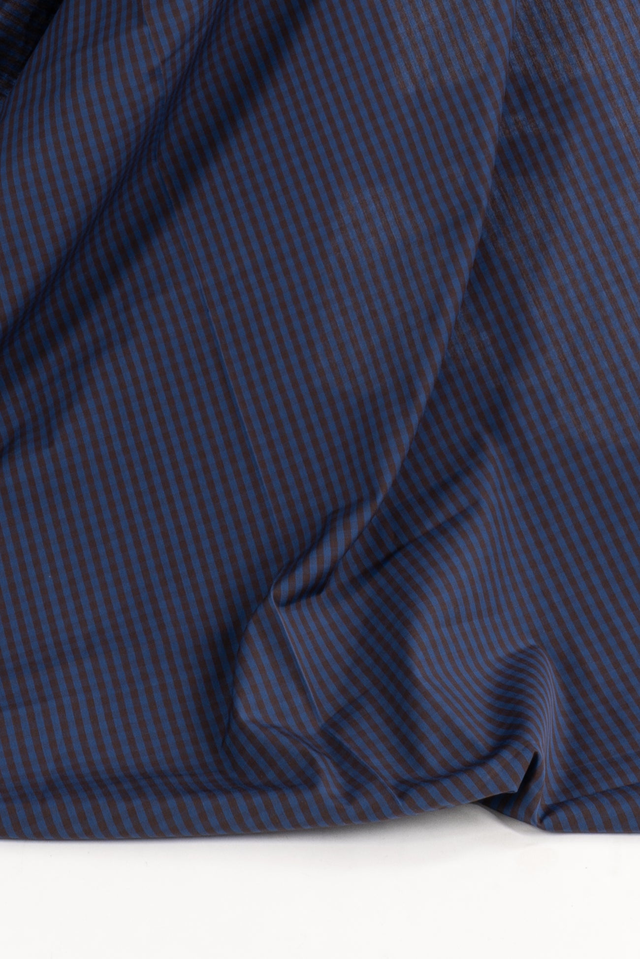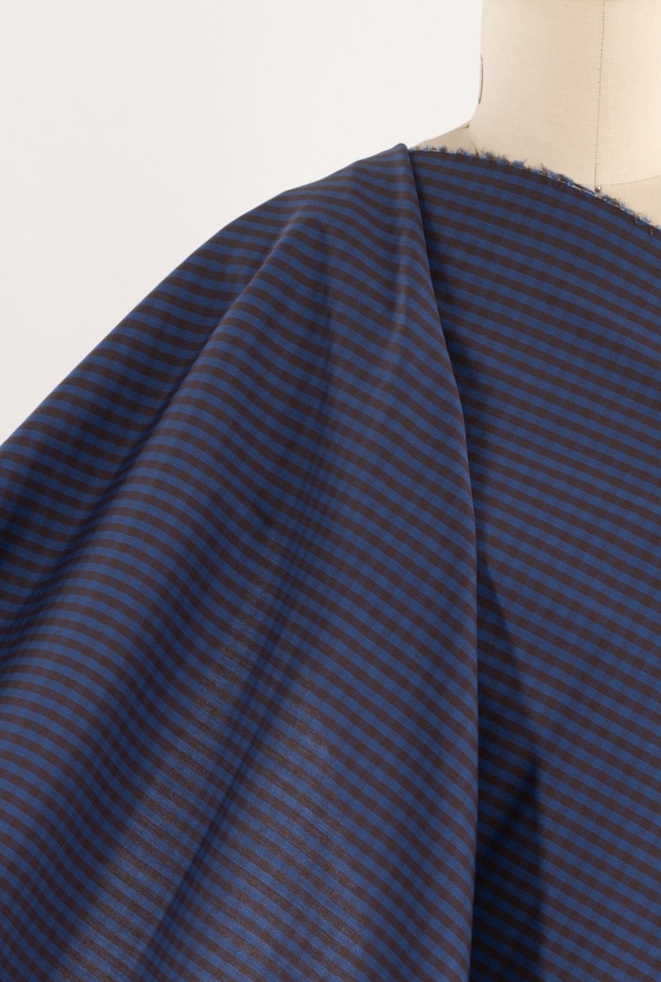 Striking brown and blue gingham checks in a beautiful yarn-dyed shirting weight cotton woven. Designer deadstock from an Italian mill is lightweight with a smooth matte hand, ¼" repeat and light drape. Perfect for a shirt, tunic, top, dress, loungewear, caftan, men's or children's. Limited quantity available.