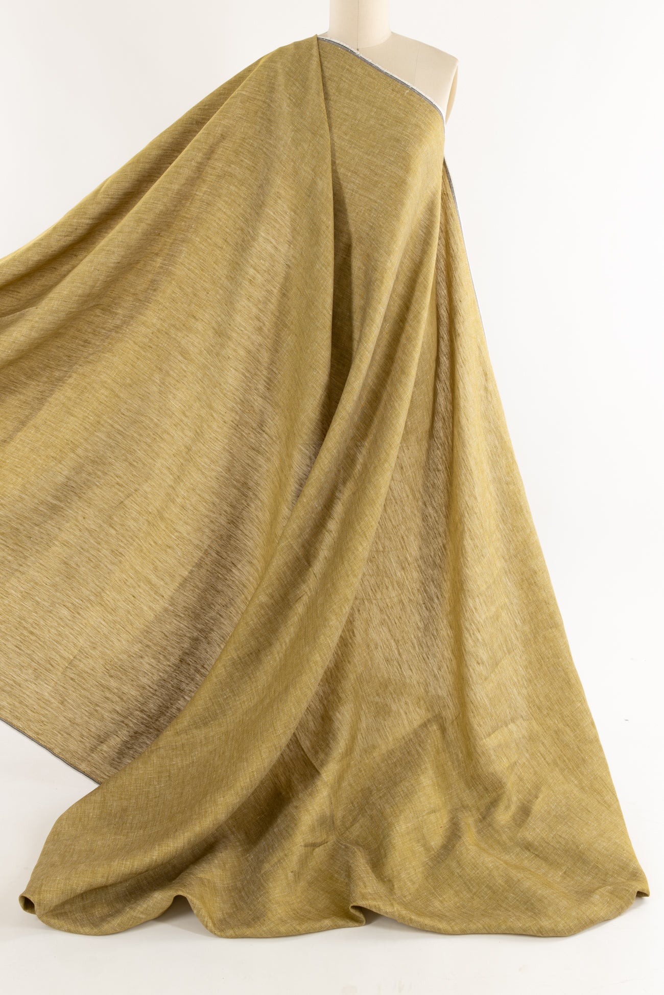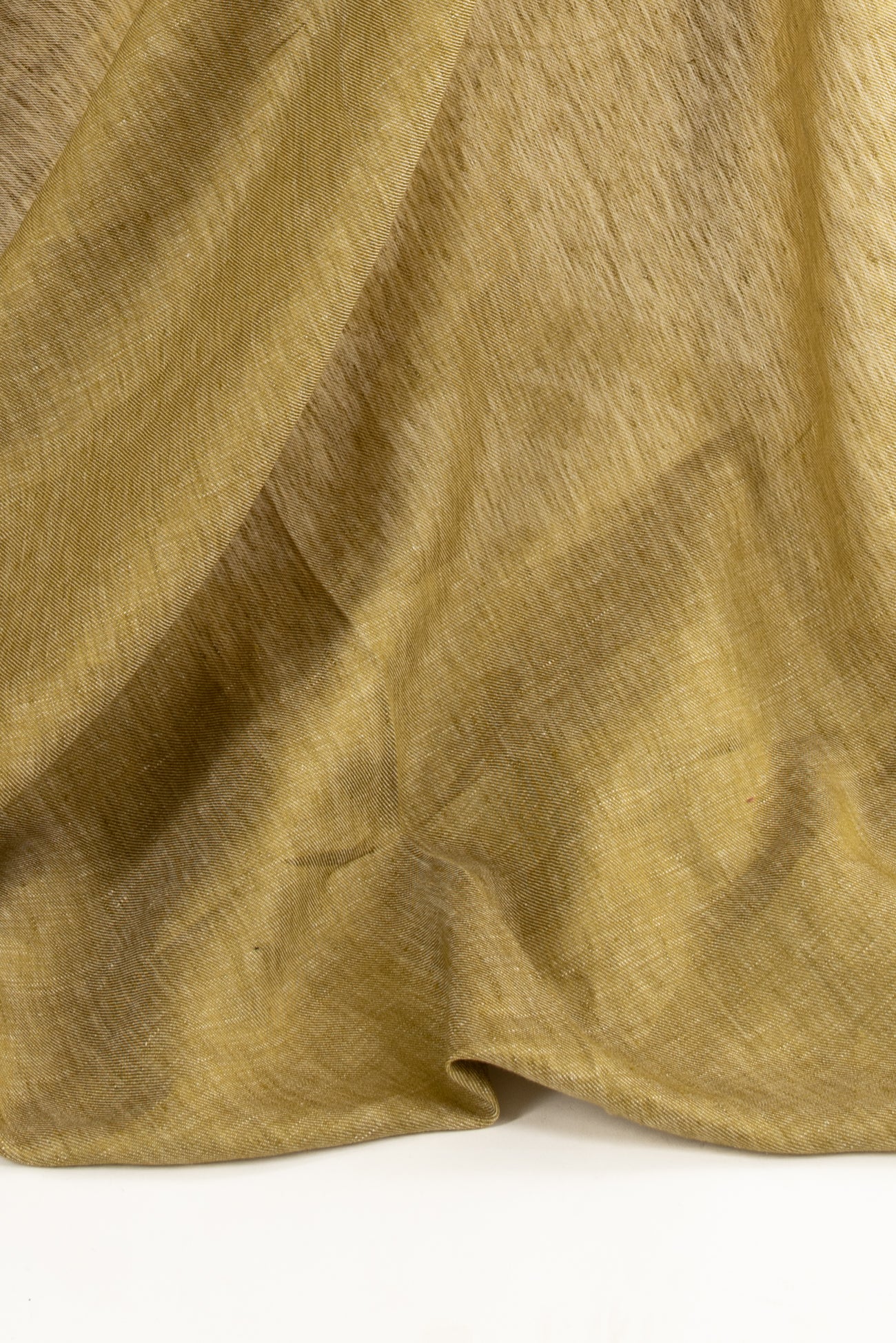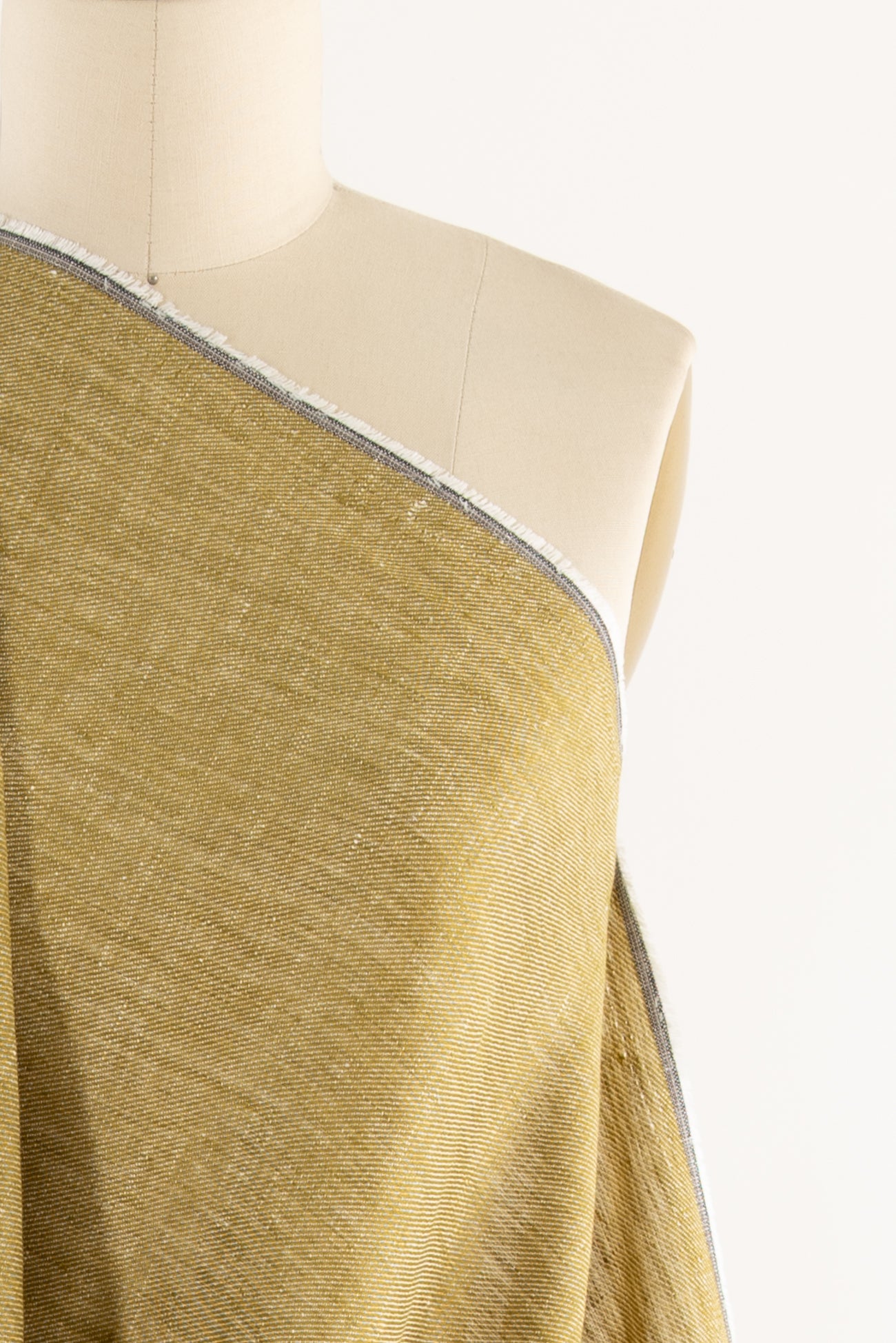 On trend tone-on-tone acid green yarn dyed linen, beautiful quality deadstock from LA designer Chalet et Ceci. Light/mid weight with subtle smooth matte hand, muted linen glow, and light drape. Just right for a shirt, light jacket, duster coat, vest, dress, skirt, loungewear or pants. Lovely quality, a beautiful basic linen that will work lined or unlined. If you are making an unlined jacket or coat, I recommend lining the sleeves to prevent wrinkling and allow other garments to slip on/off easily. If making structured pants, I'd underline the front to the knee to prevent wrinkling. My favorite lining for linen is a rayon bemberg or rayon blend.