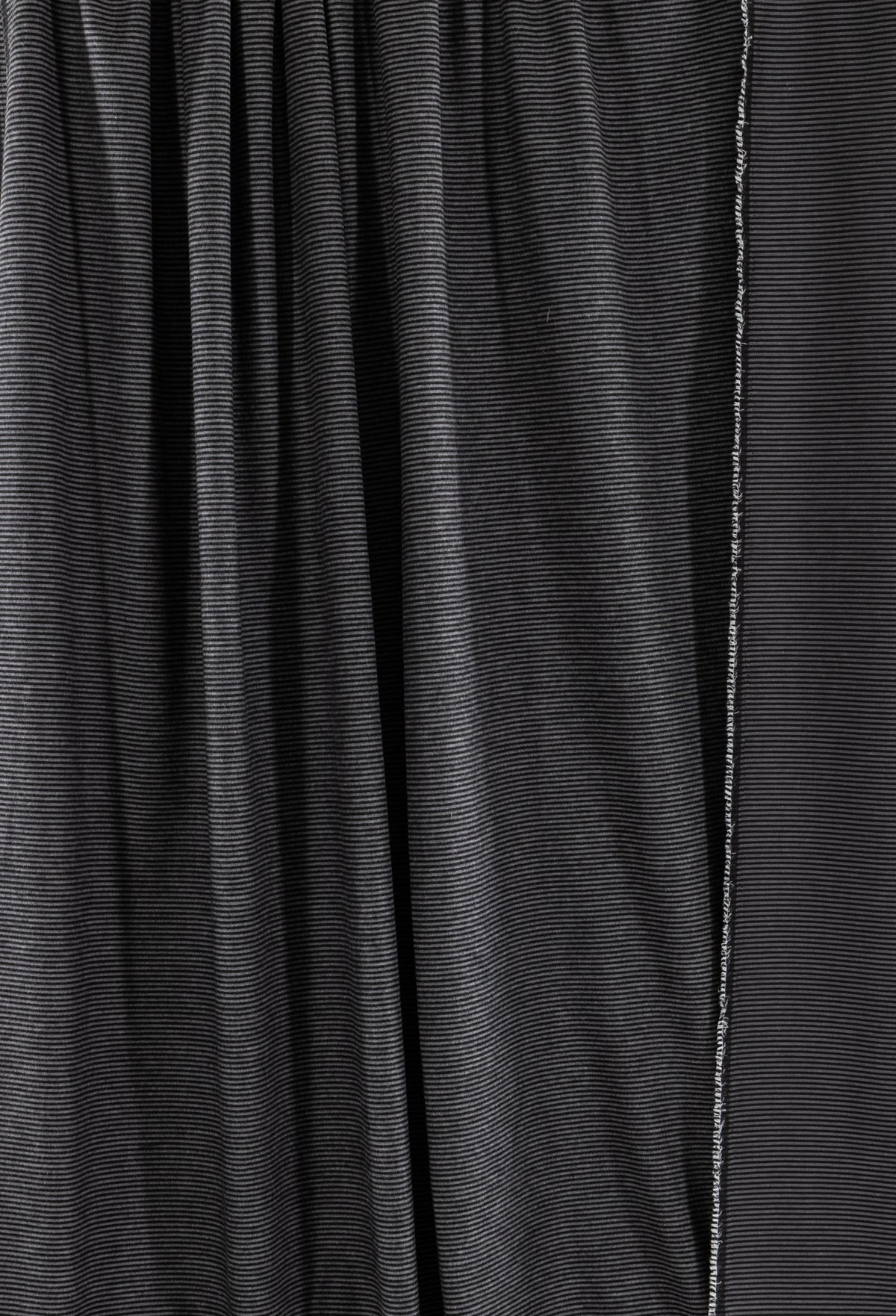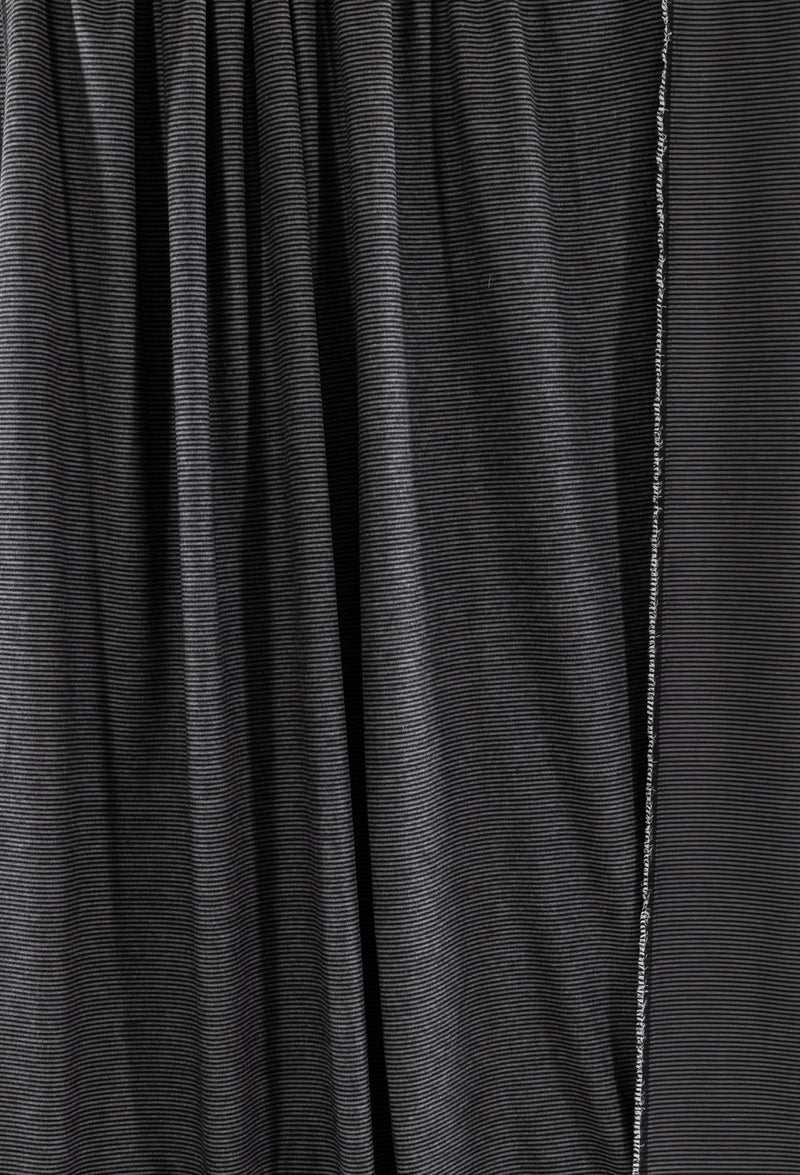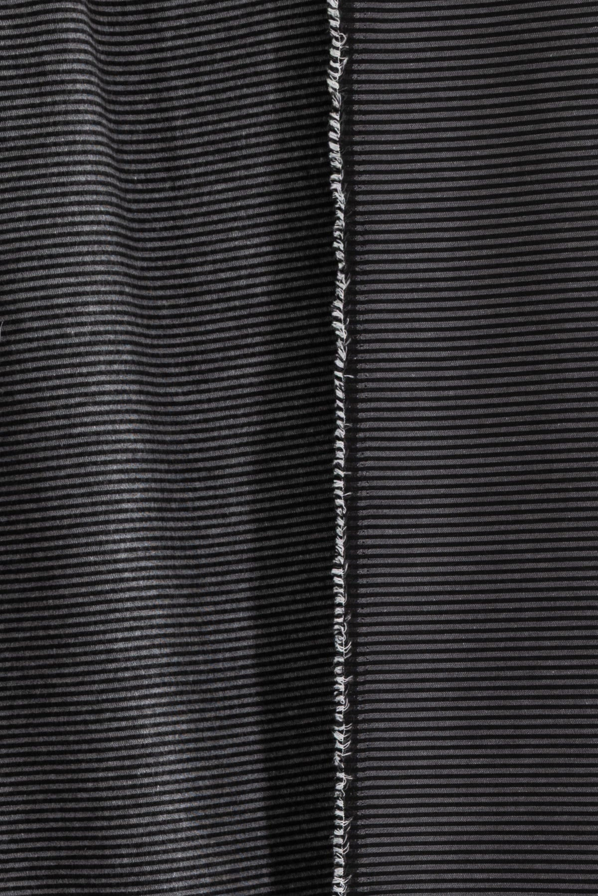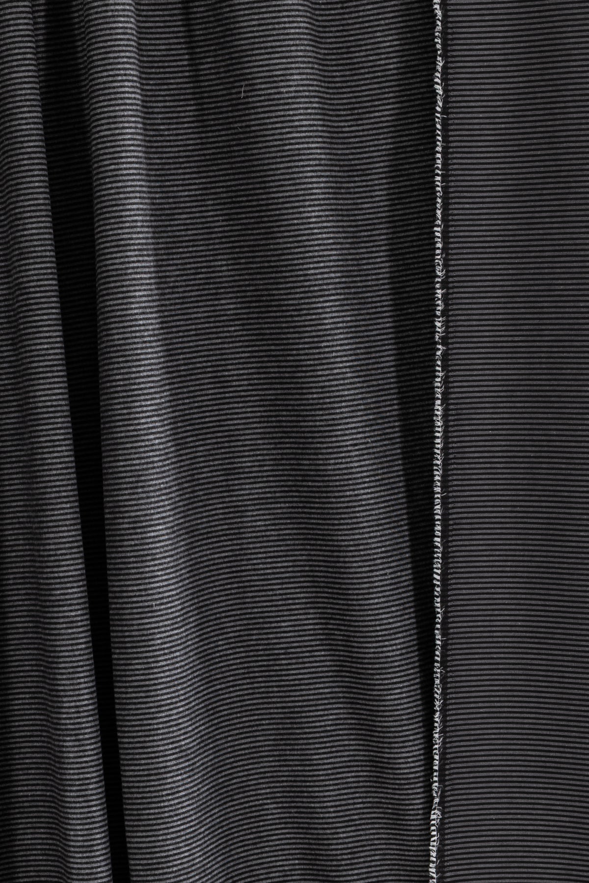 Polished black and gray stripes in a fine quality yarn-dyed rayon blend, deadstock from LA designer Katrin Noon for Spirithouse. Light/mid-weight, opaque, with a soft smooth hand and soft supple drape. Right for a dress, skirt, blouse, tunic, kimono, caftan, soft pants, men's or sophisticated children's.