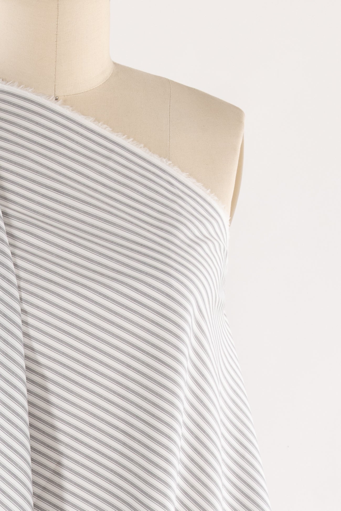 Classic black and white ticking stripes in a beautiful yarn-dyed shirting weight cotton woven. Designer deadstock from an Italian mill is lightweight with a smooth matte hand and light drape. Perfect for a shirt, tunic, top, dress, loungewear, caftan, men's or children's. Limited quantity available.