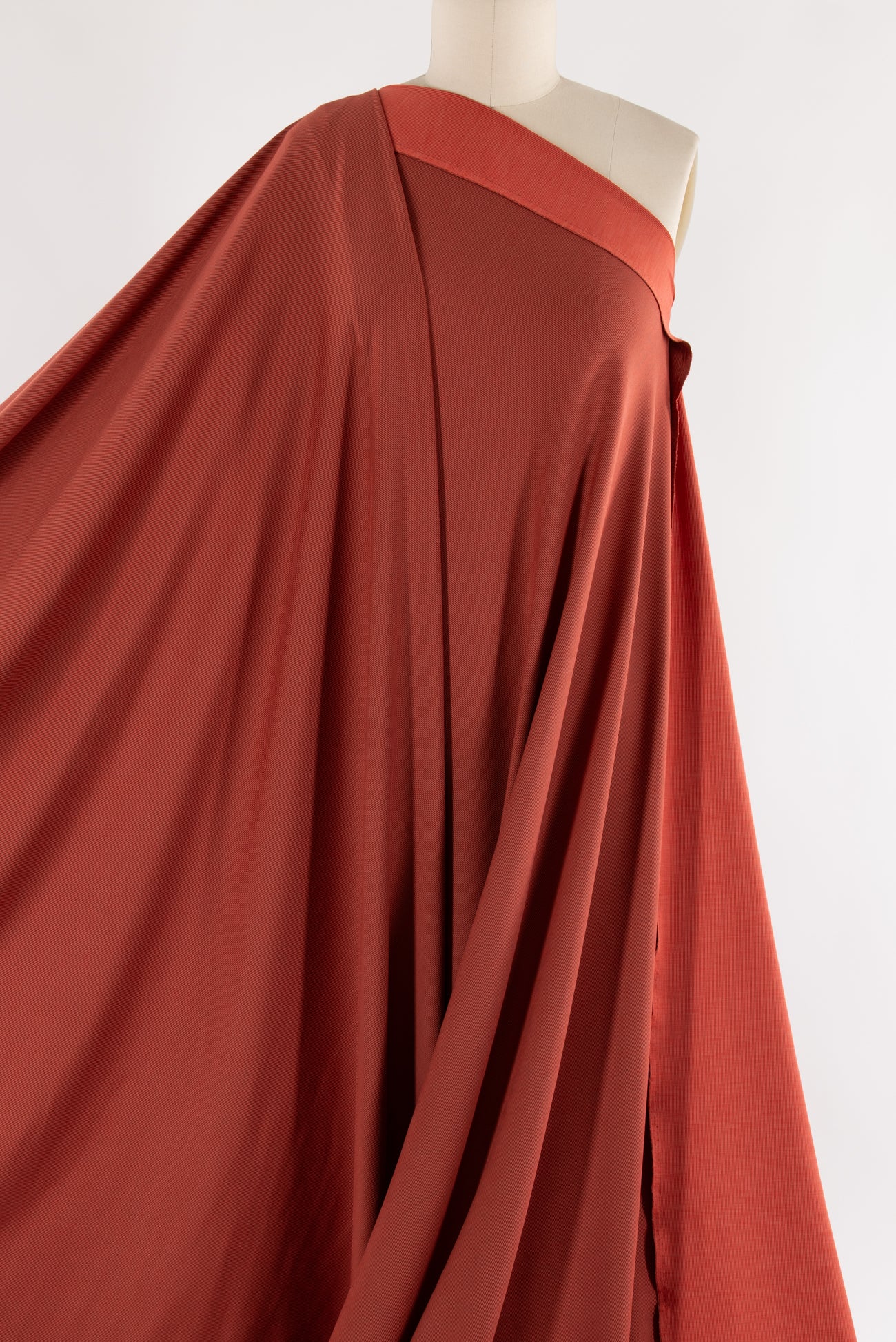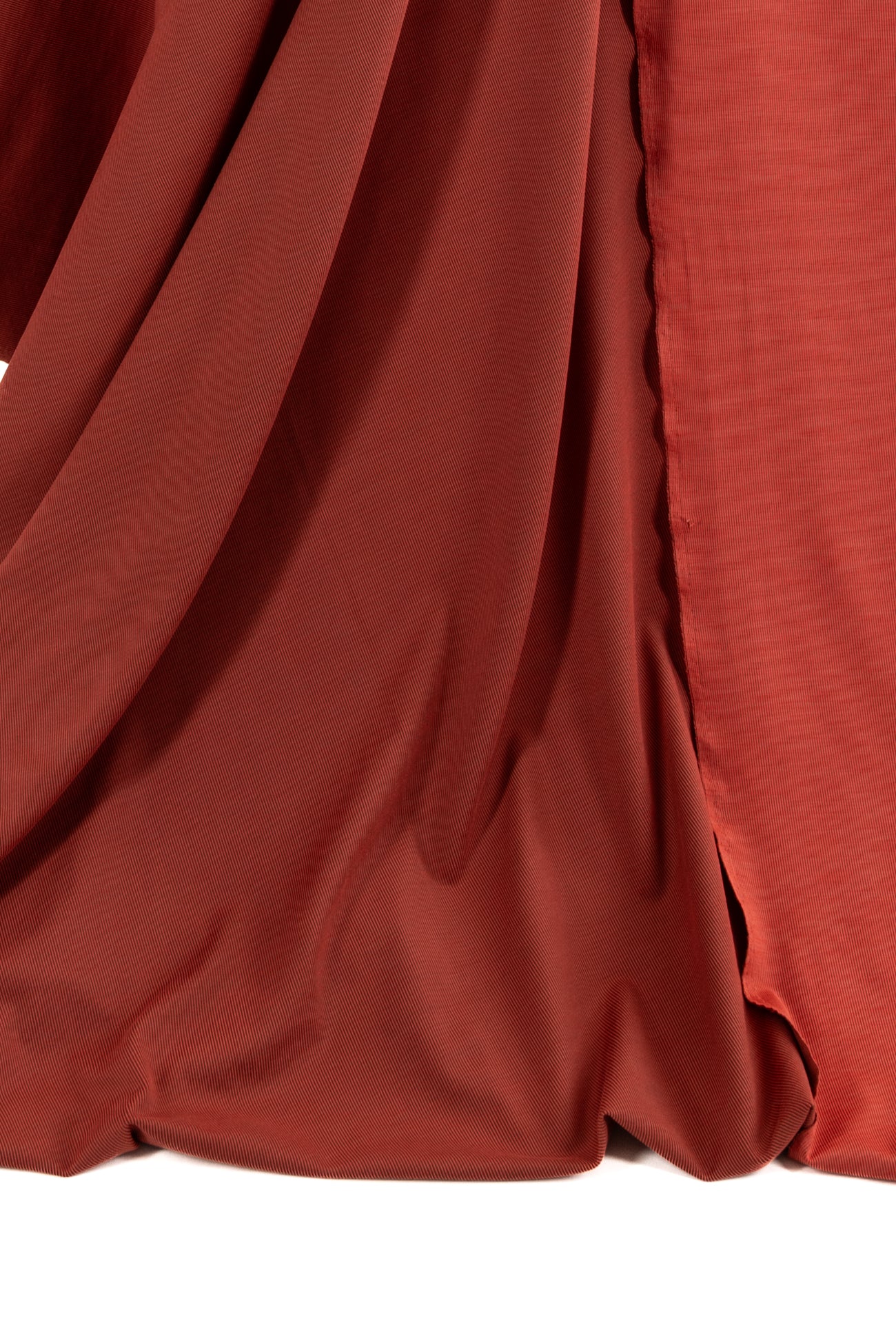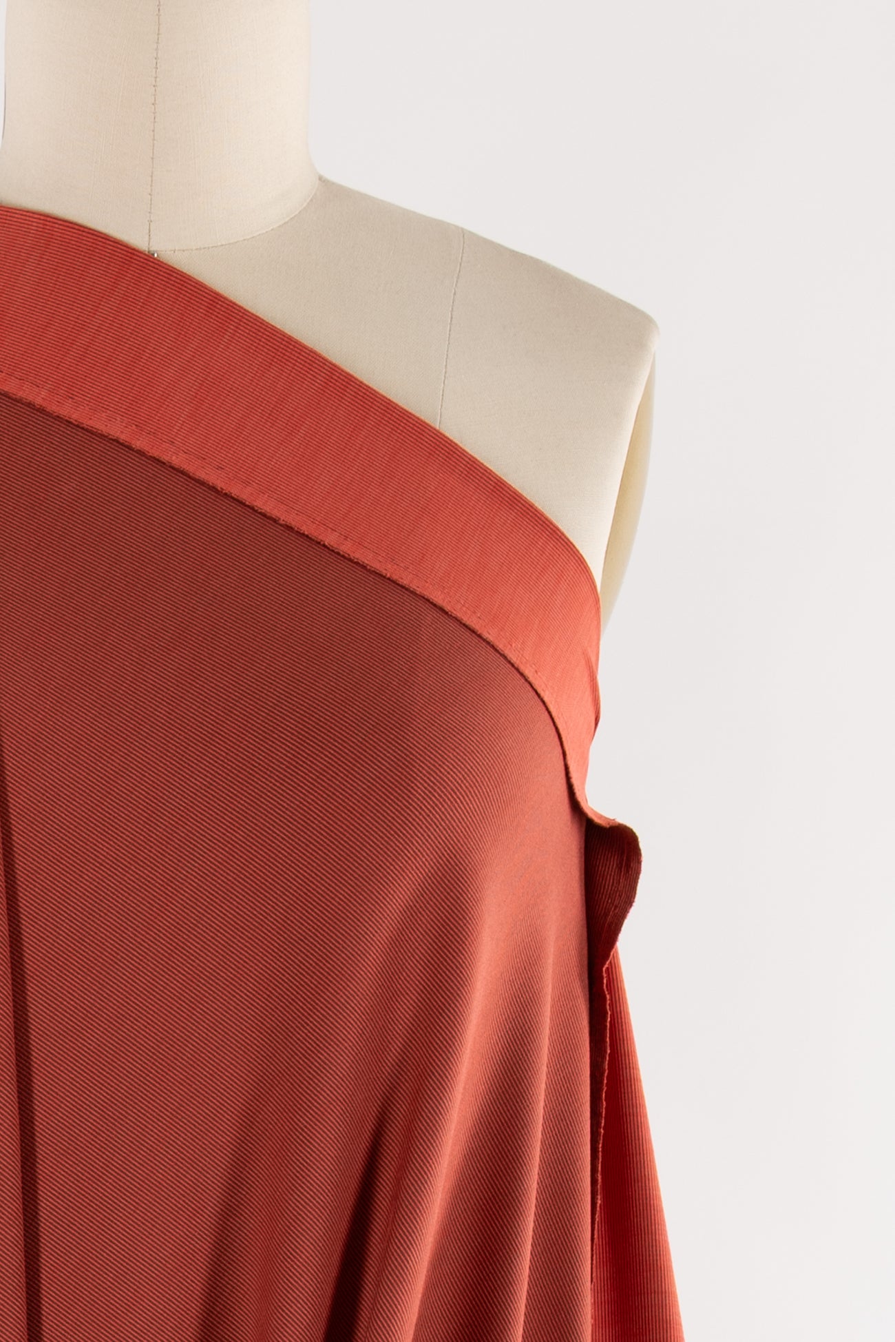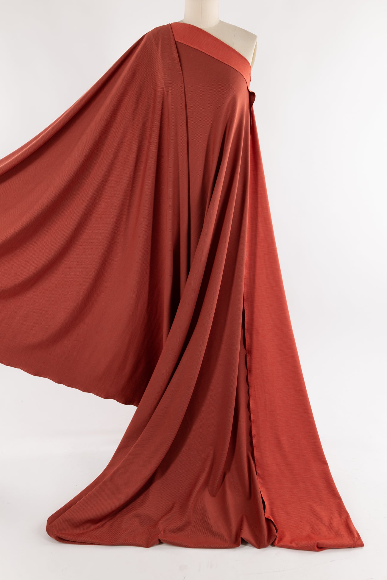 Soft muted orange in a fine quality technical knit deadstock from a high end Lulu-like LA designer. Mid-weight, soft hand, very finely ribbed, darker on one side, (use either/both sides), with a supple soft drape, 4-way stretch, and little rolling at the cut edge. Right for both tops and bottoms, yoga, athleisure, t-shirt, top, dress, sweater, soft pant, skirt, light jacket, hoodie, leggings, or cardi.