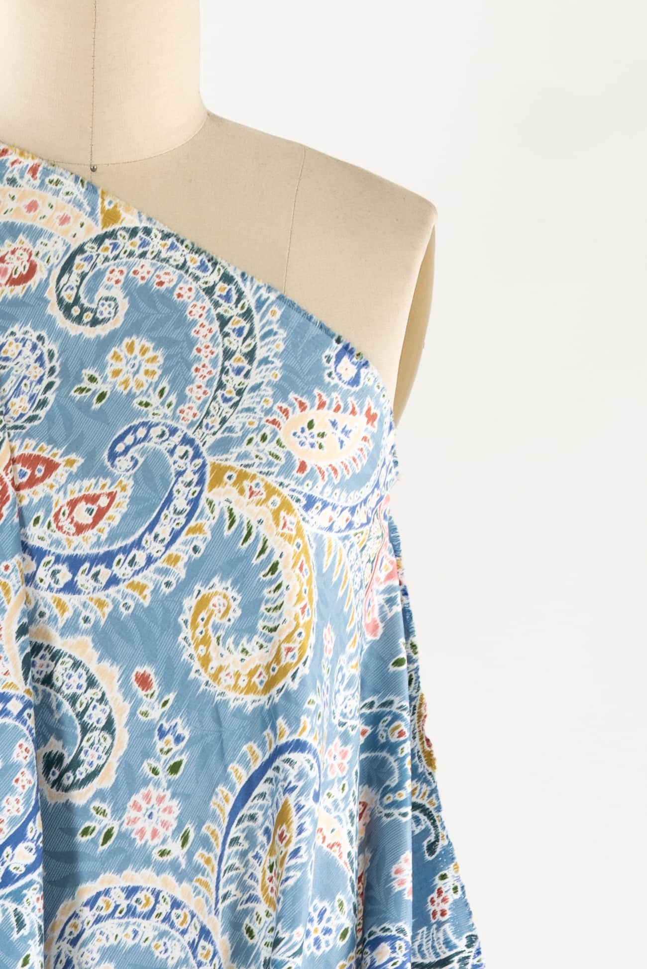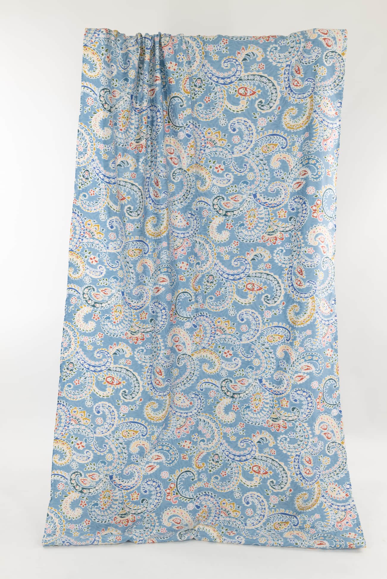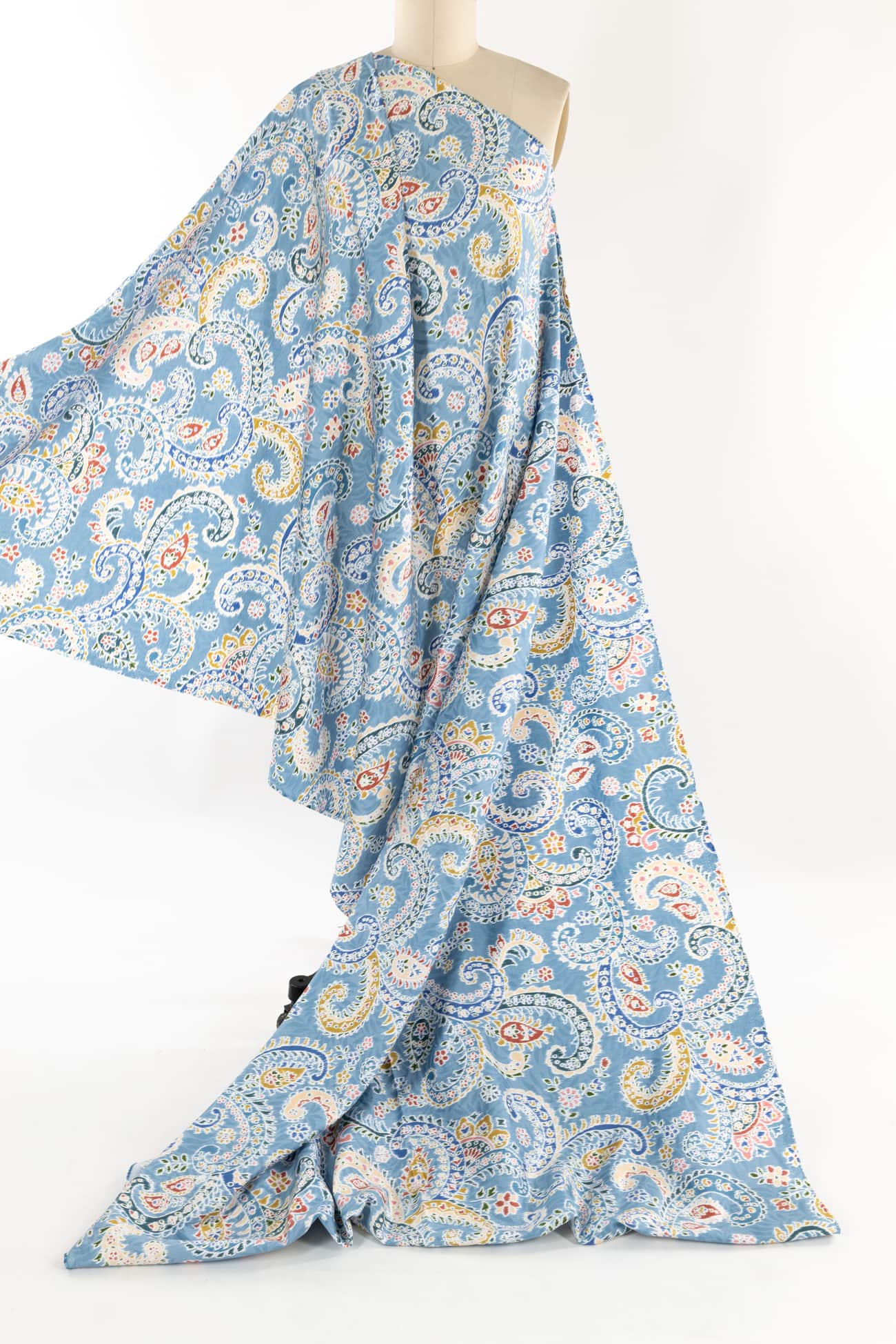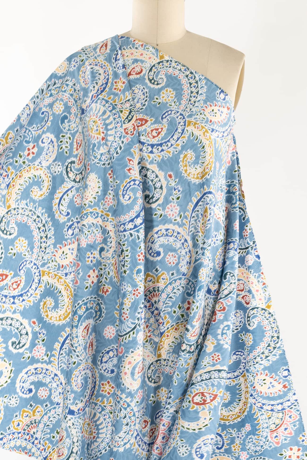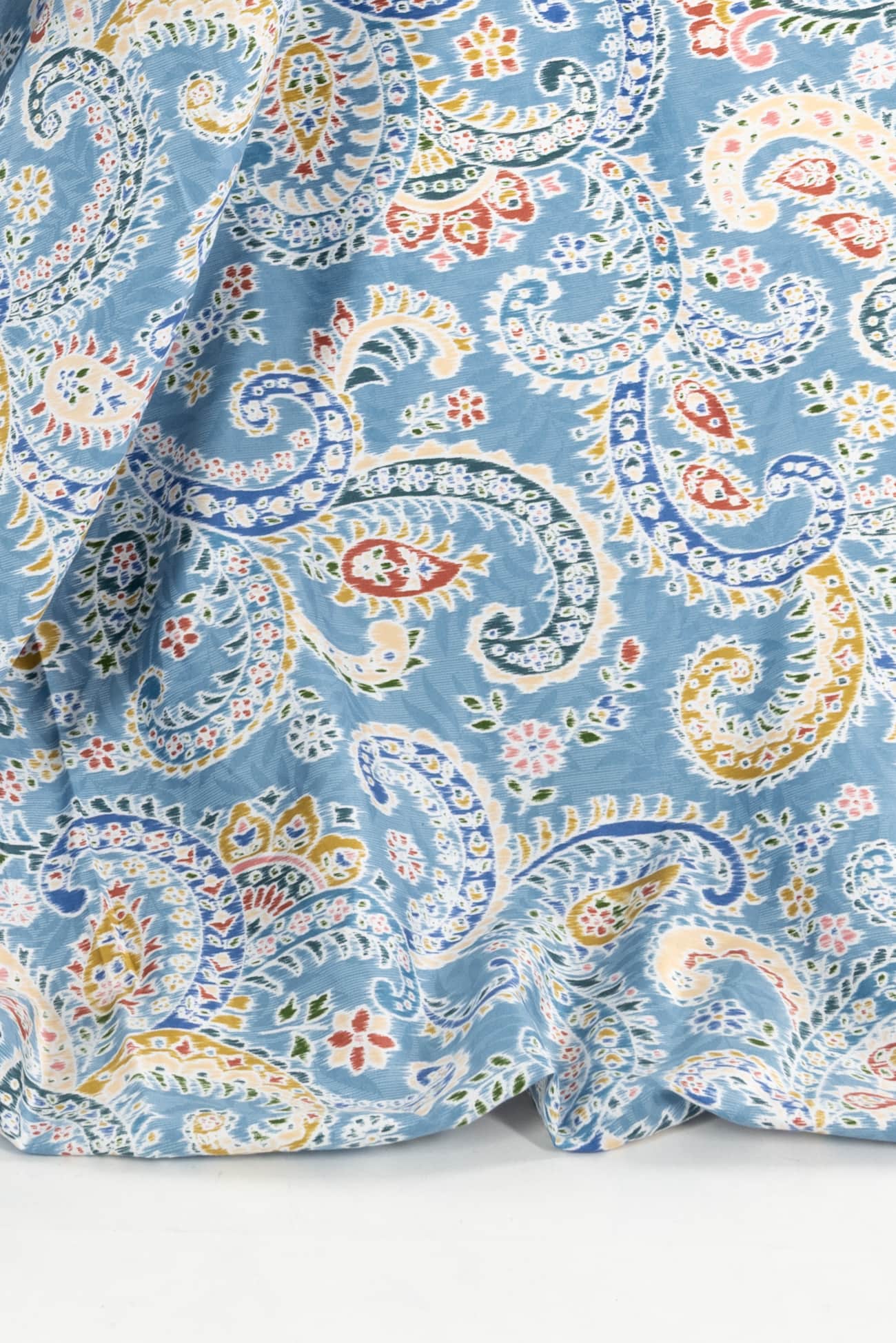 Charming blue toned paisley, deadstock produced for a NYC designer in a Japanese mill on impeccable shirting weight cotton. Lightweight, opaque, fine grained with a smooth hand and soft drape. Right for a dress, shirt, skirt, tunic, kimono, caftan, soft pants, loungewear, children's clothes and for quilting and home decor projects. One way design, 25" repeat.